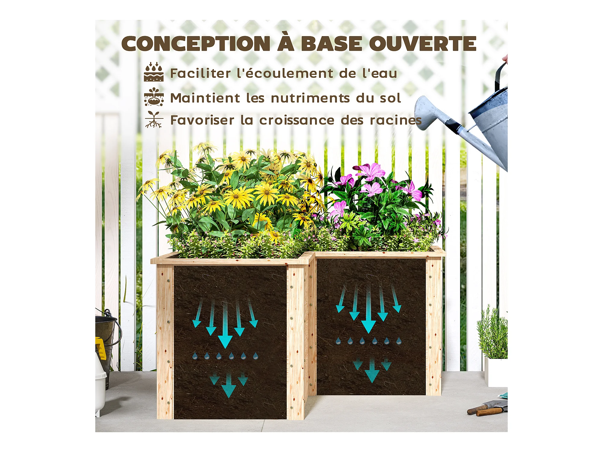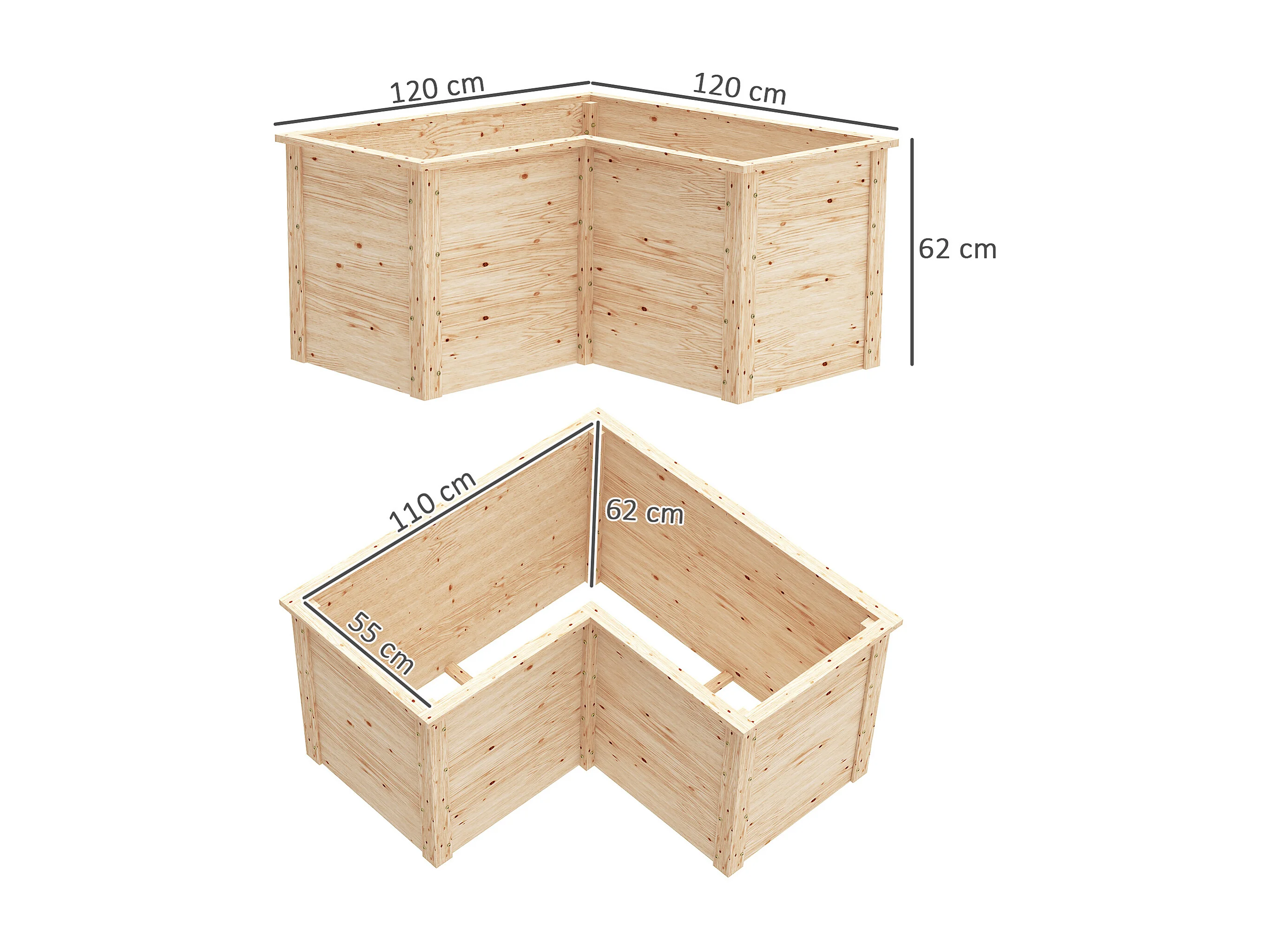 Carré Potager Jardinière en Bois de SaBois Base Ouverte en L, Jardinière Surélevée pour Légumes Fruits, pour Jardin Cour Pelouse, 120 x 120 x 62 cm