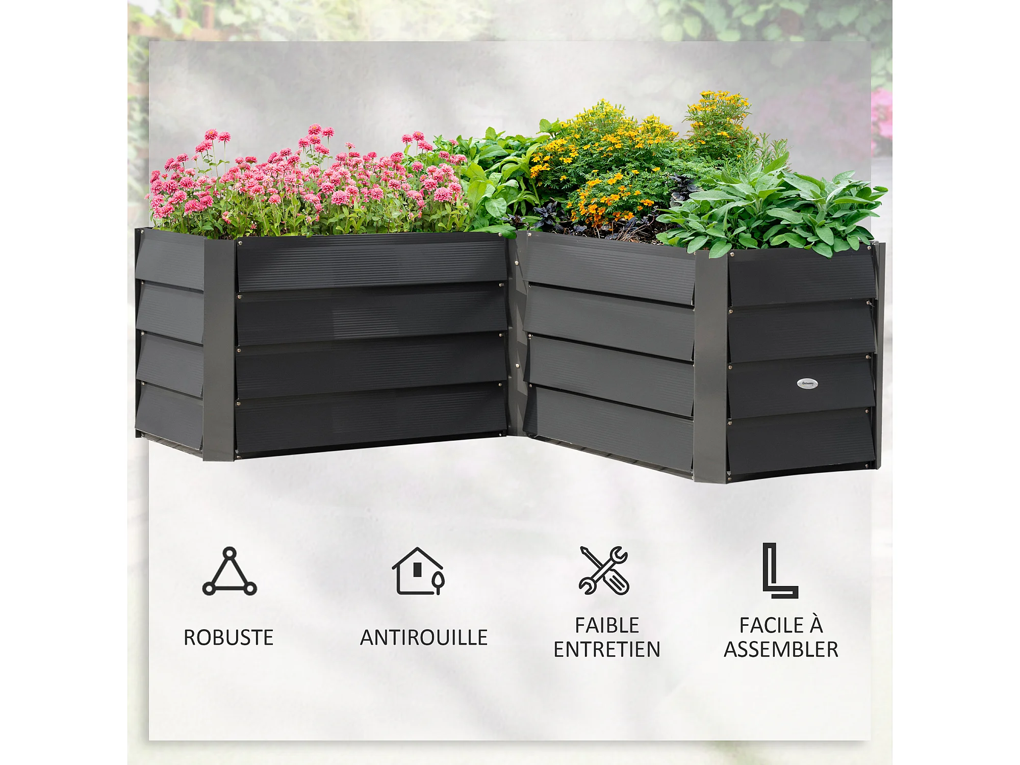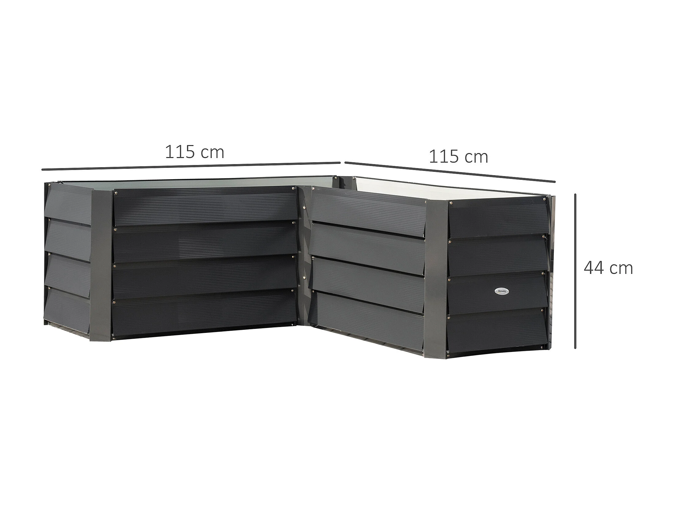 Carré potager de jardin jardinière d'angle sans fond - 115L x 115l x 44H cm - acier galvanisé gris foncé