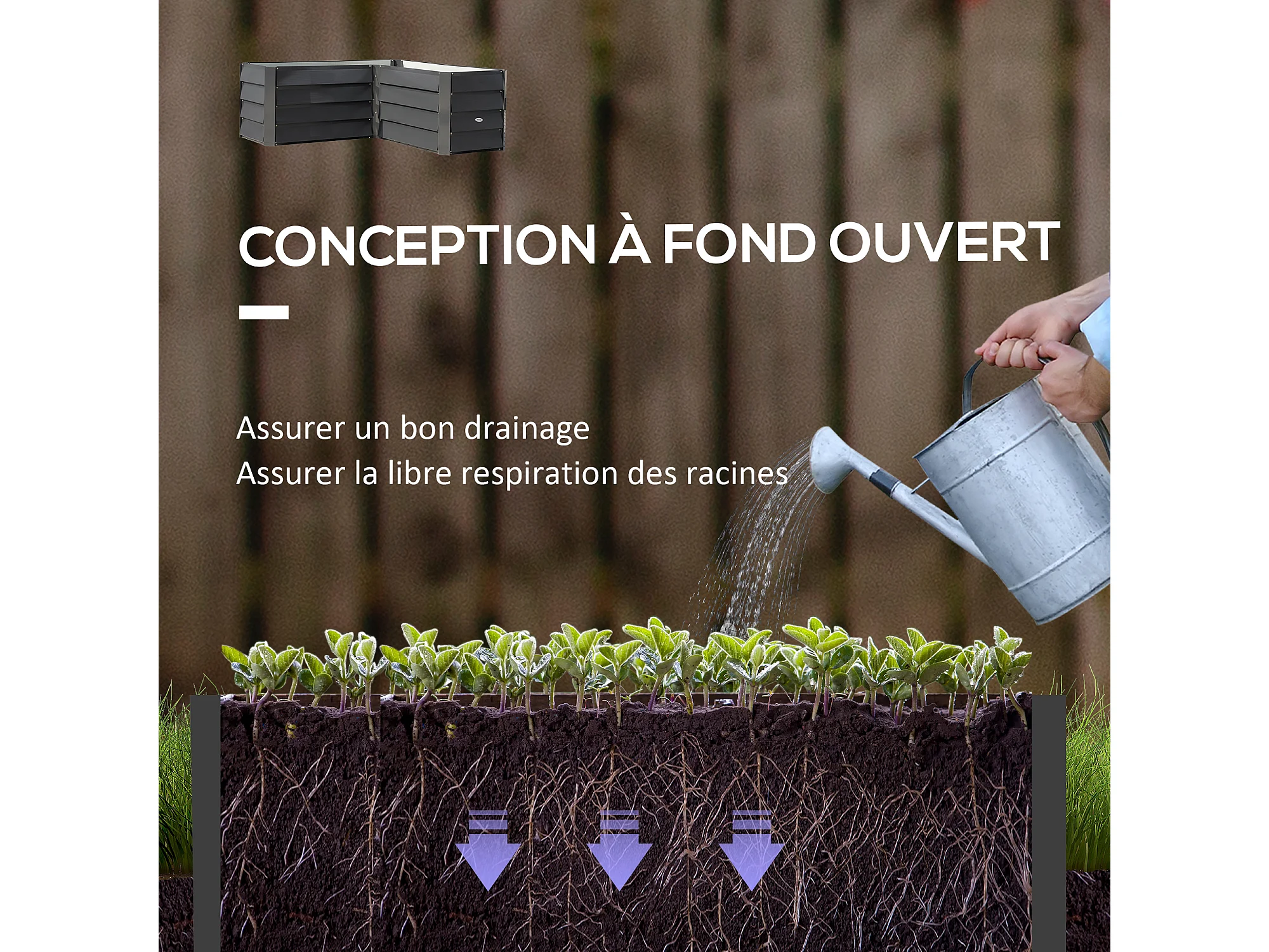 Jardinière carré potager 2 étages dim. 120L x 101l x 58H cm tôle d'acier ondulée gris foncé