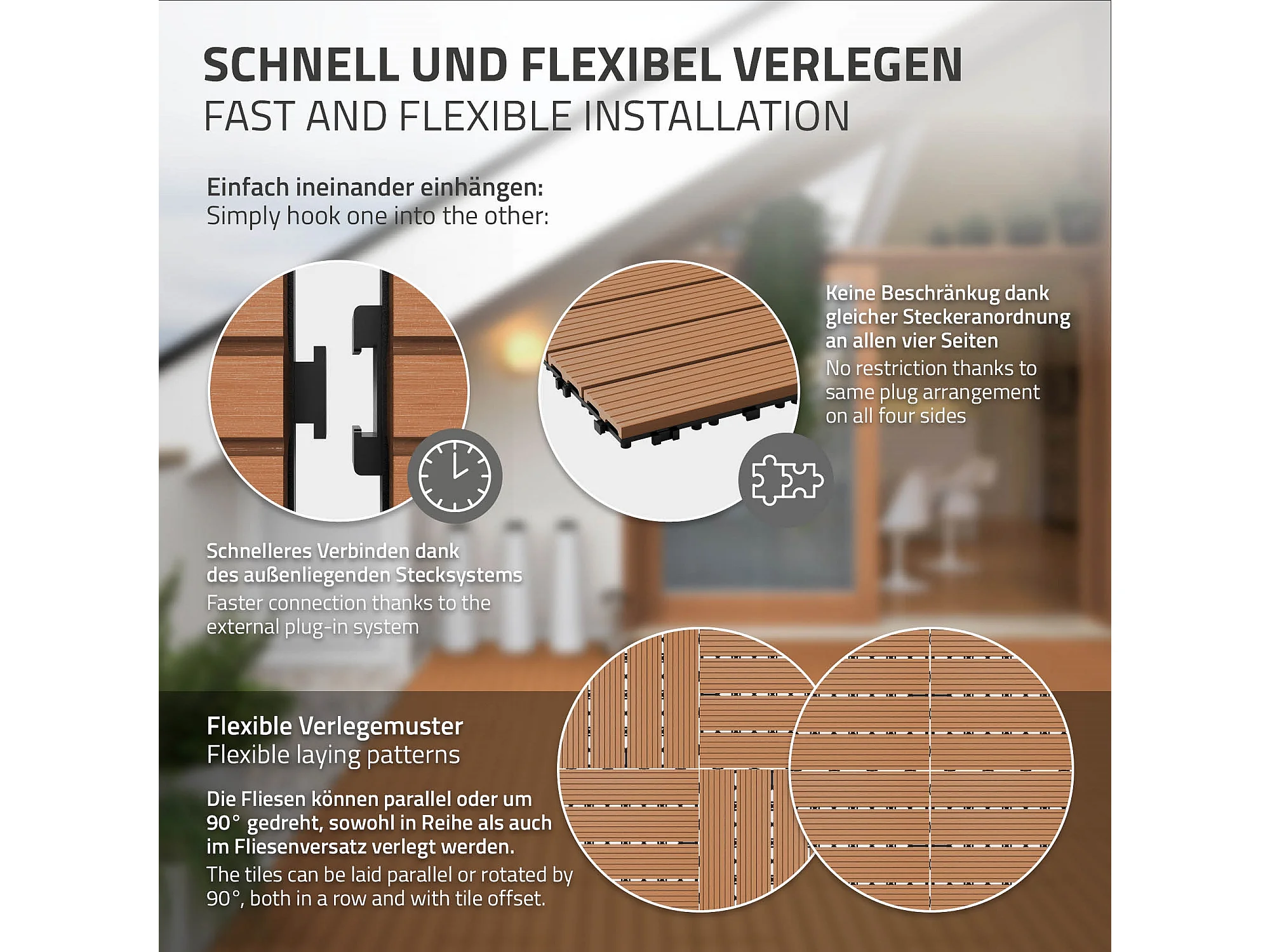 Carreaux WPC aspect bois 60x30cm 1 m² dalles de sol teck ECD Germany