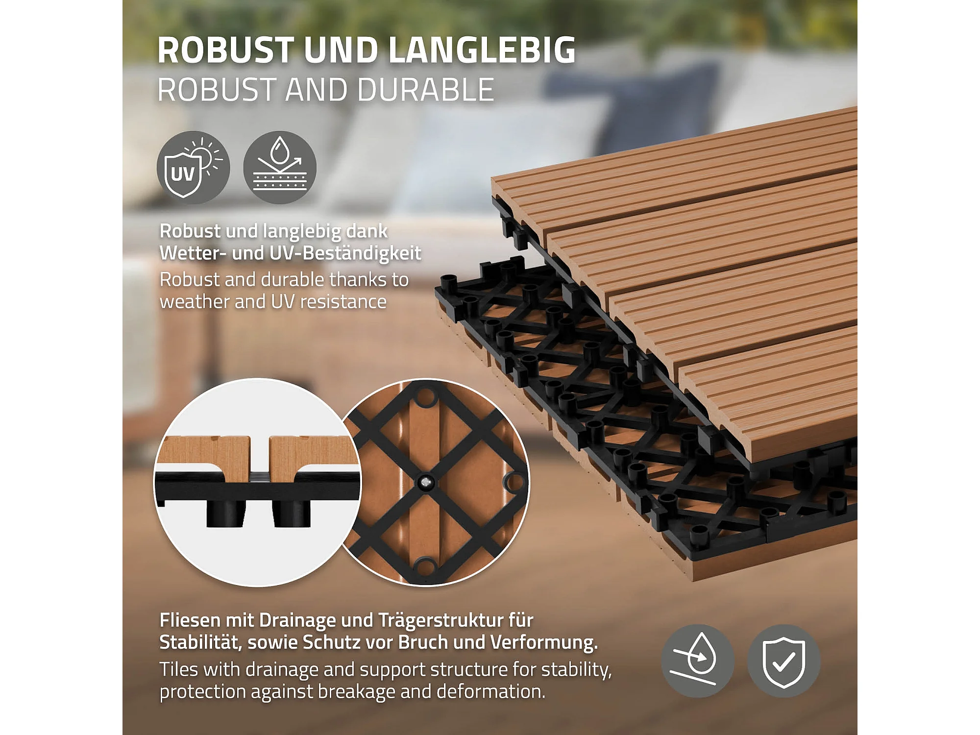 Carreaux terrasse dalles 30x30cm carrelage jardin aspect bois marron clair ECD Germany