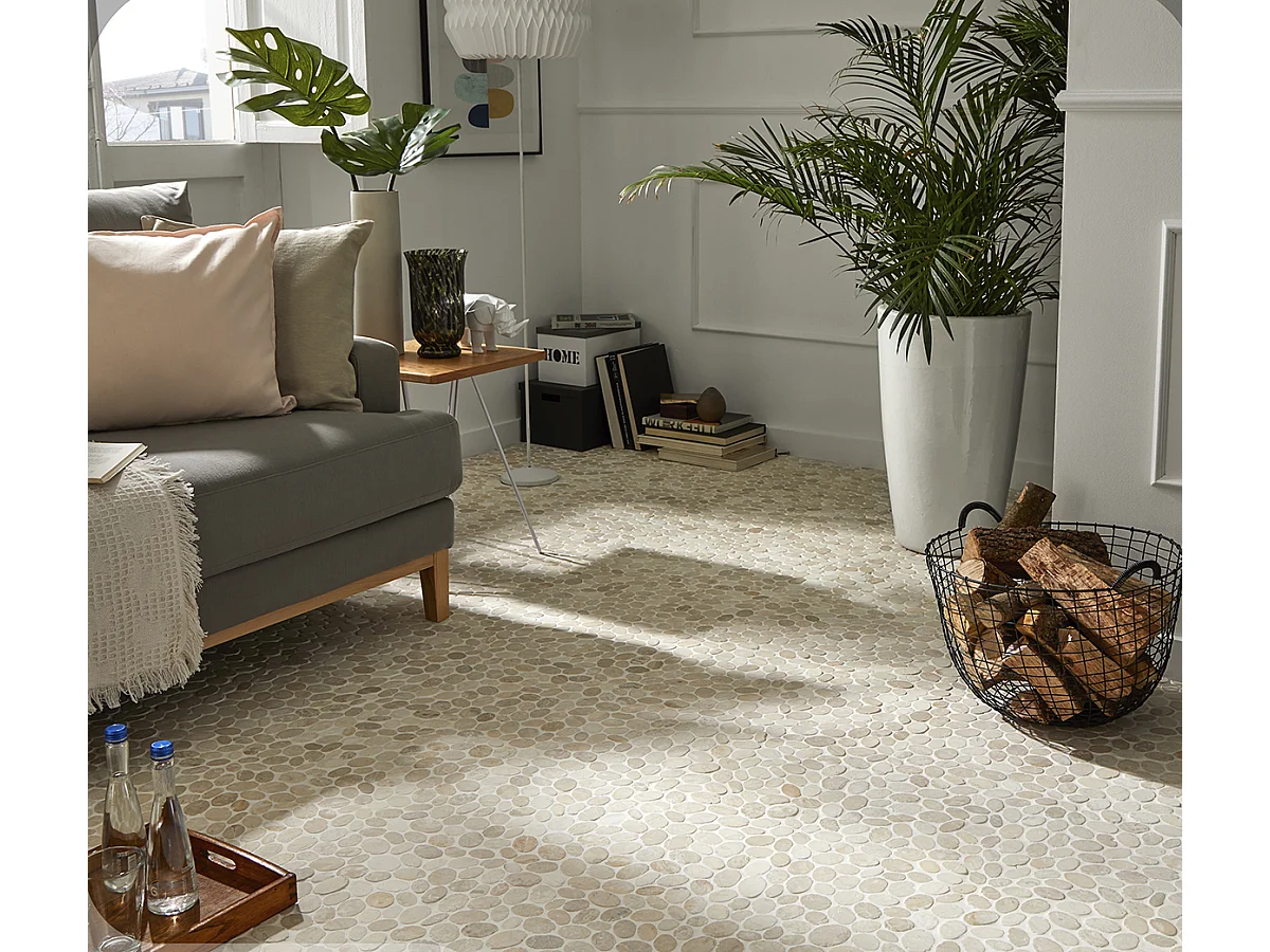 Carrelage de mosaïque (Boite de 1m²)/Galet de mer / Maille décorative aspect pierre coloris marron mat - 33 x 33 cm