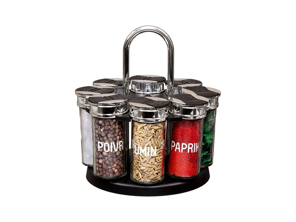 Carrousel Epices 8 Pots Couvercle Plastique Noir, Transparent