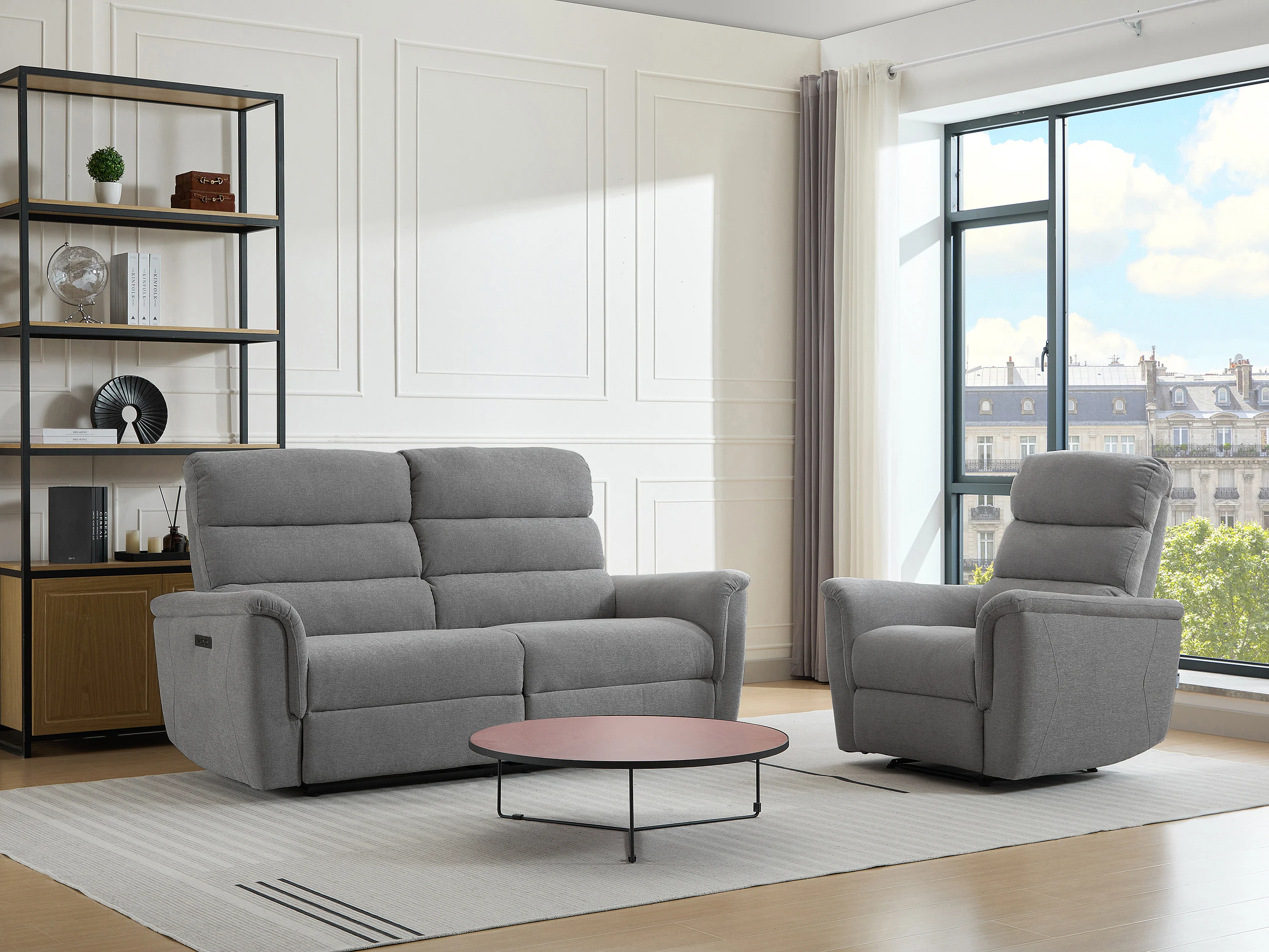 Canapé 3 places et fauteuil relax électrique en tissu gris CARTASIA