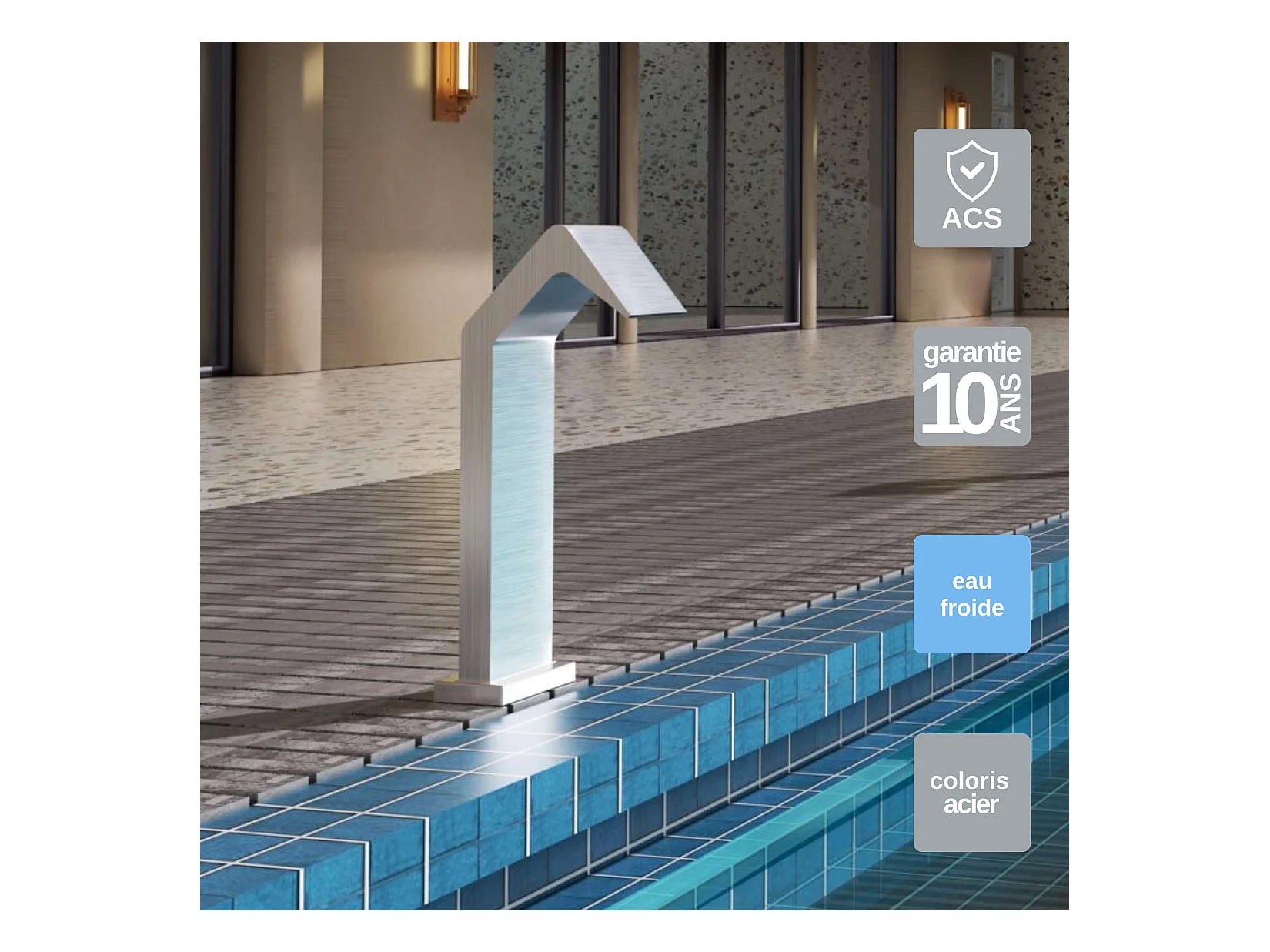 Cascade de piscine Niagara en Acier Inox.S316 - Corps 150x55mm - H.54cm - Garantie 10 ans - POOL IMEX