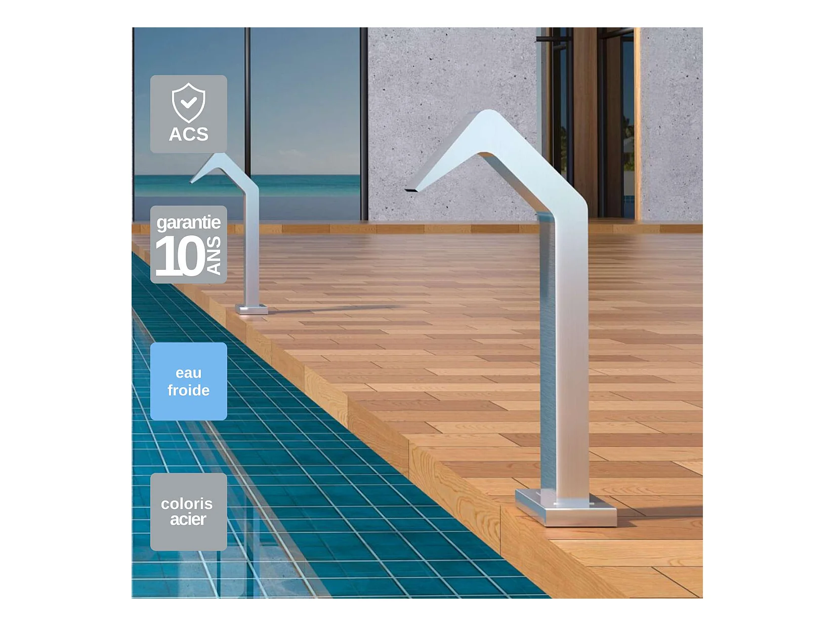 Cascade de piscine Niagara en Acier Inox.S316 - Corps 60x55mm - H.54cm - Garantie 10 ans - POOL IMEX