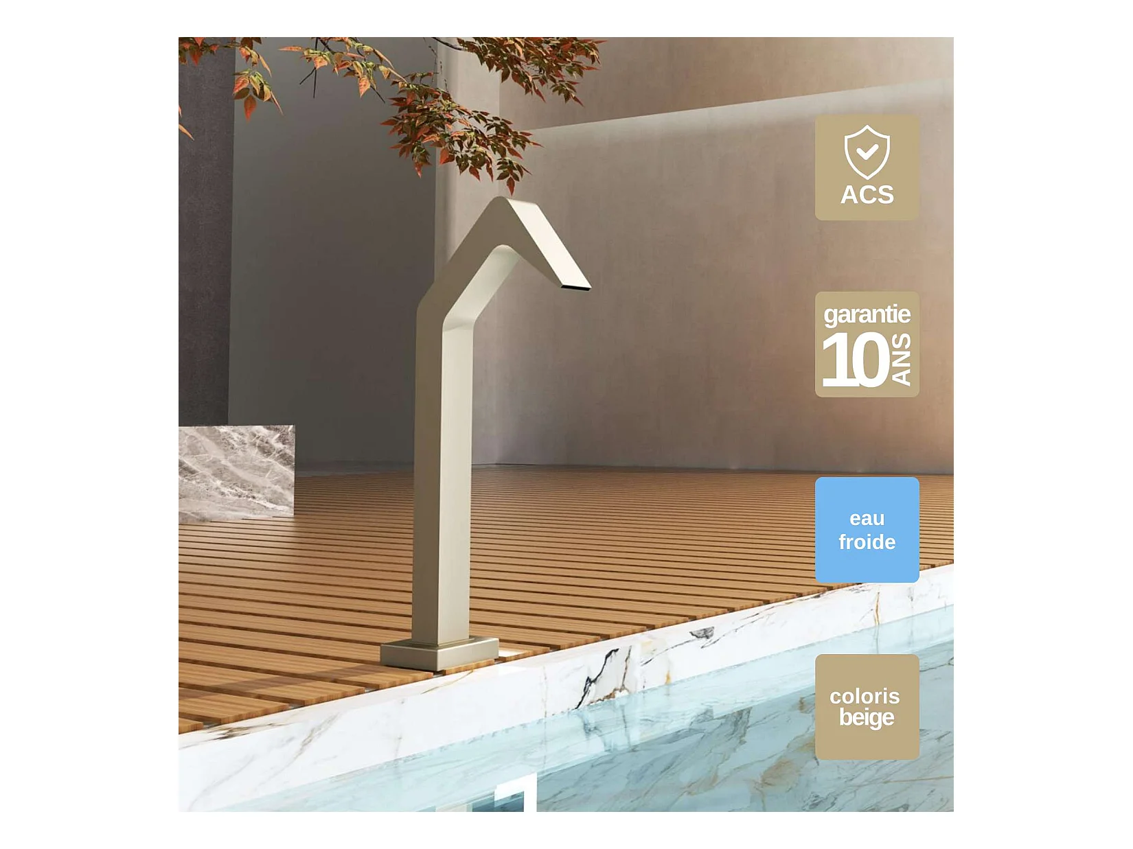 Cascade de piscine Niagara en Acier Inox.S316 Moka - Corps 60x55mm - H.54cm - Garantie 10 ans - POOL IMEX