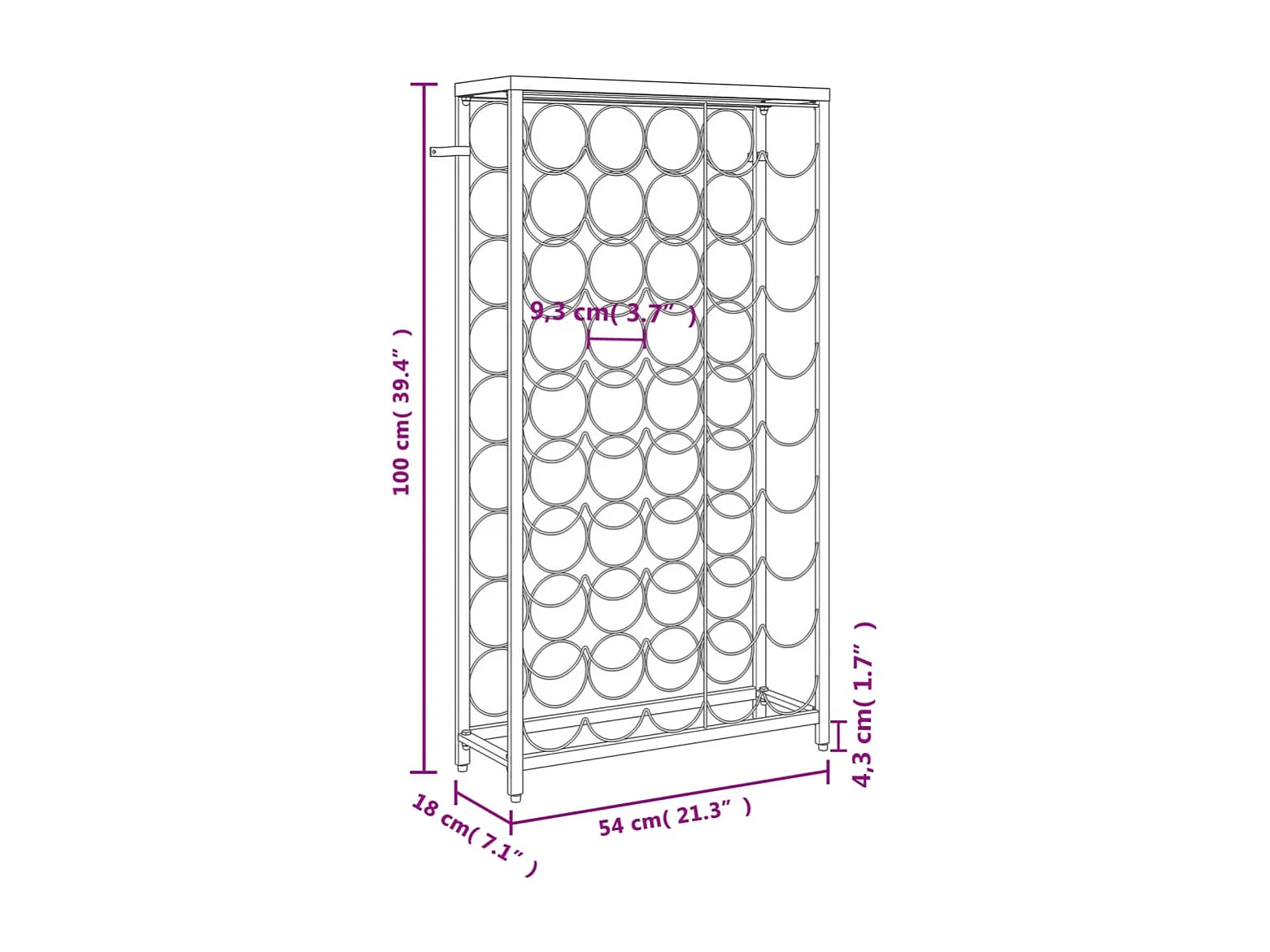 Casier à bouteilles de 45 bouteilles noir 54x18x100 fer forgé