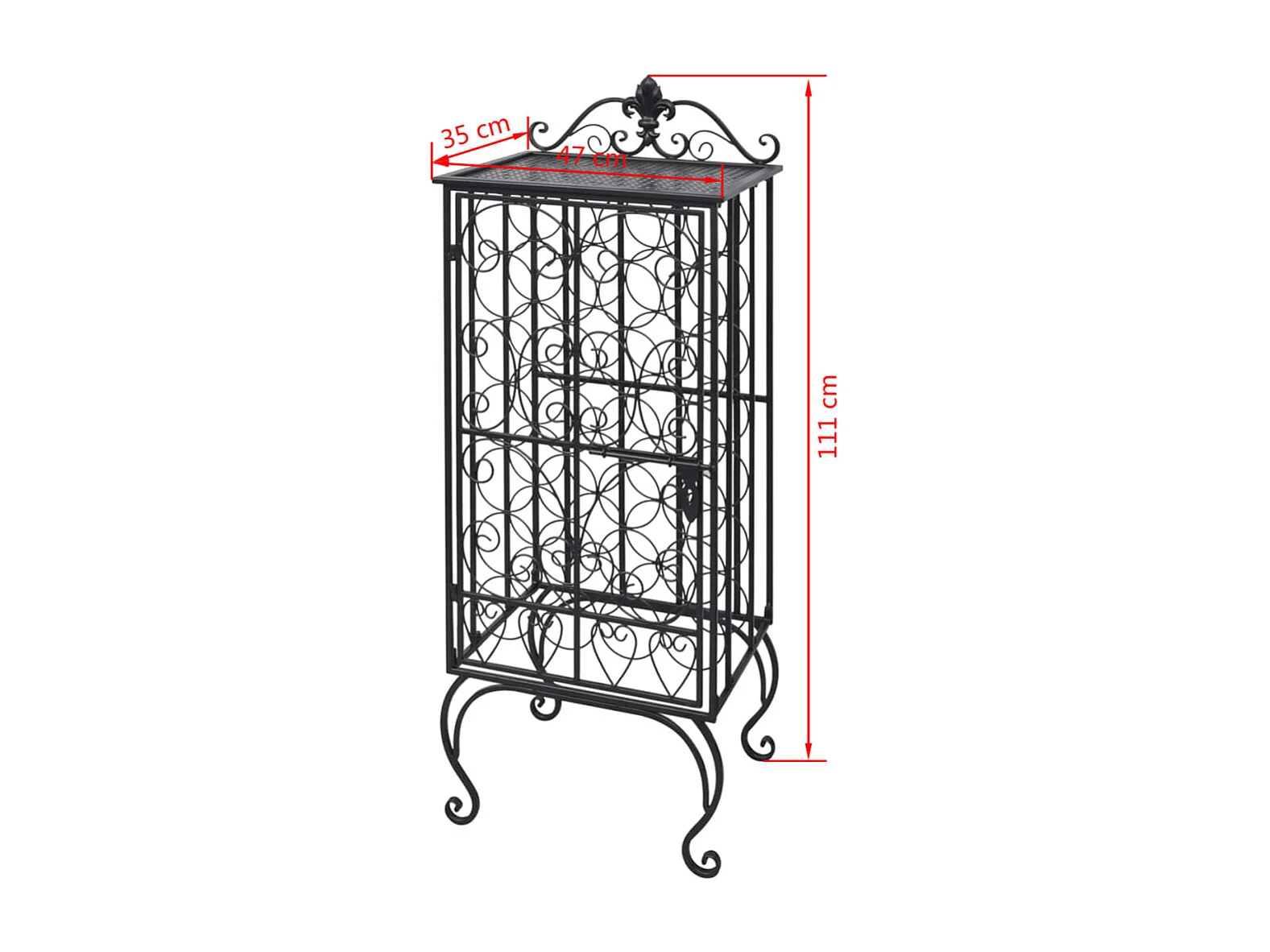 Casier à bouteilles de 45 bouteilles noir 54x18x100 fer forgé