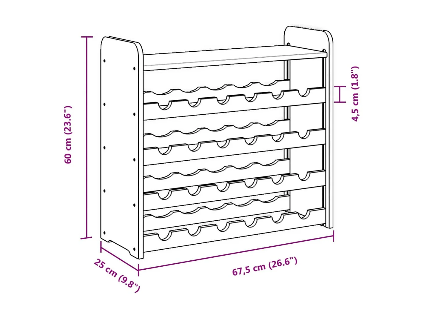 Casier à vin et panneau supérieur 67,5x25x60 bois pin massif