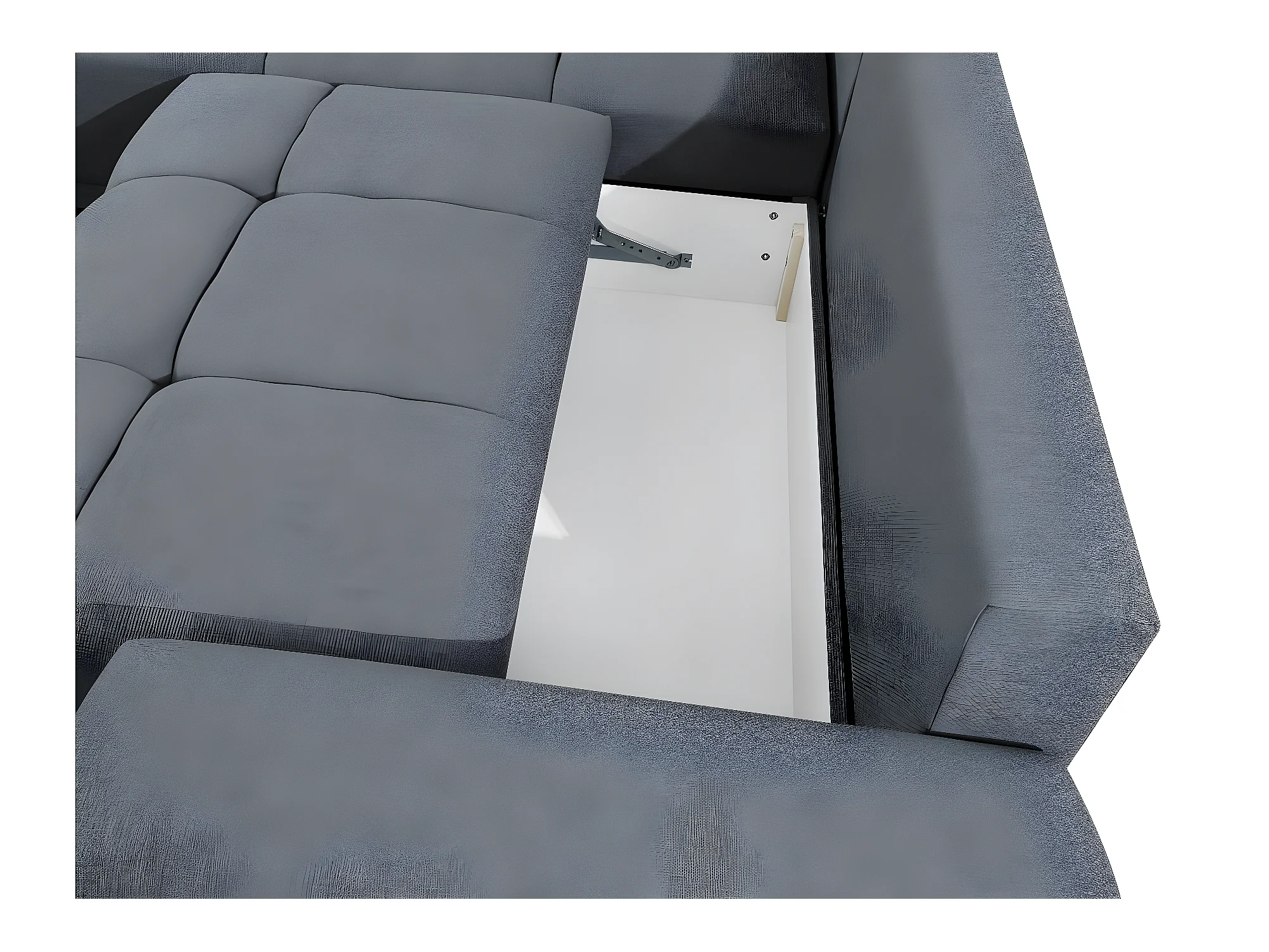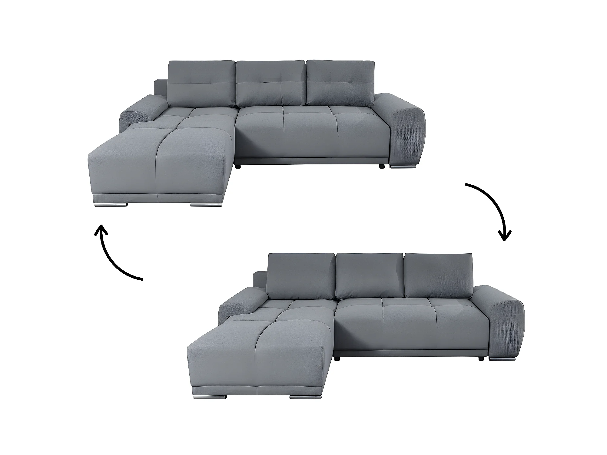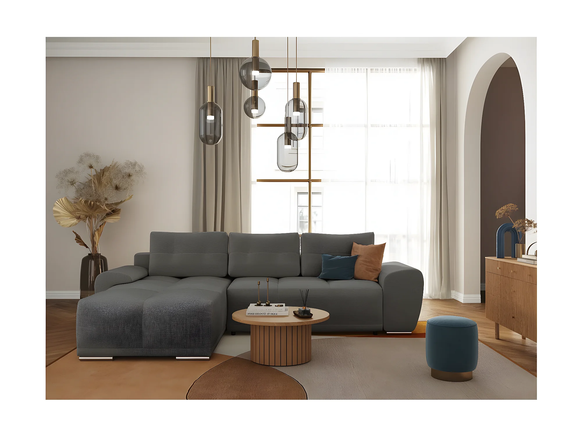 Canapé d'angle gauche 4 places convertible Cassandra avec coffre en tissu - Gris - L270 x P181 x H89cm - Loungitude