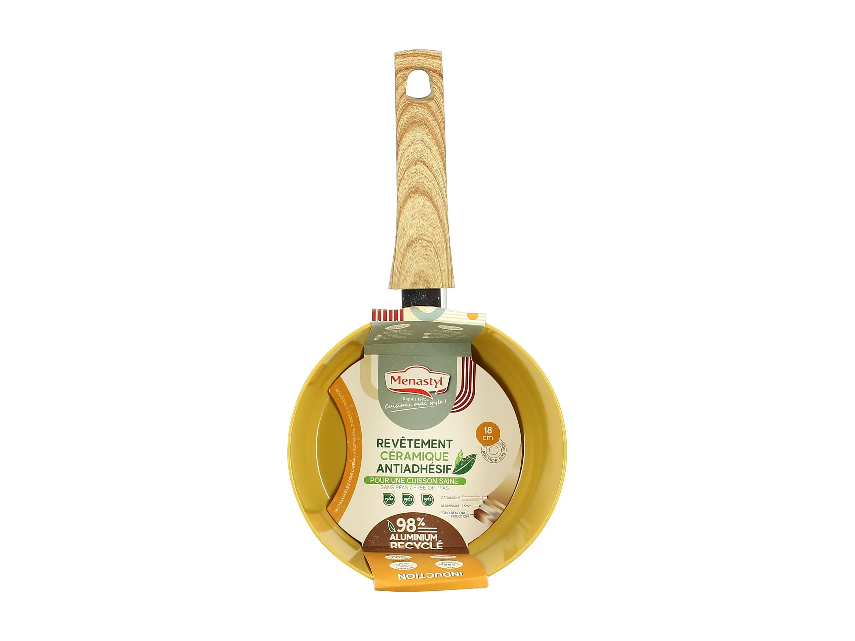 Menastyl - Casserole 18cm Colorama Safran - En Aluminium - Revetement Antiadhesif En Ceramique