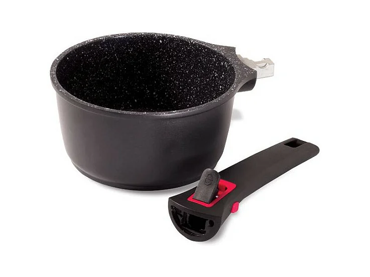 Casserole Granit Pro 16cm + Manche Amovible Baumalu - Cuisine Saine Sans Matière Grasse - Revêtement Anti-adhérent 3 Couches