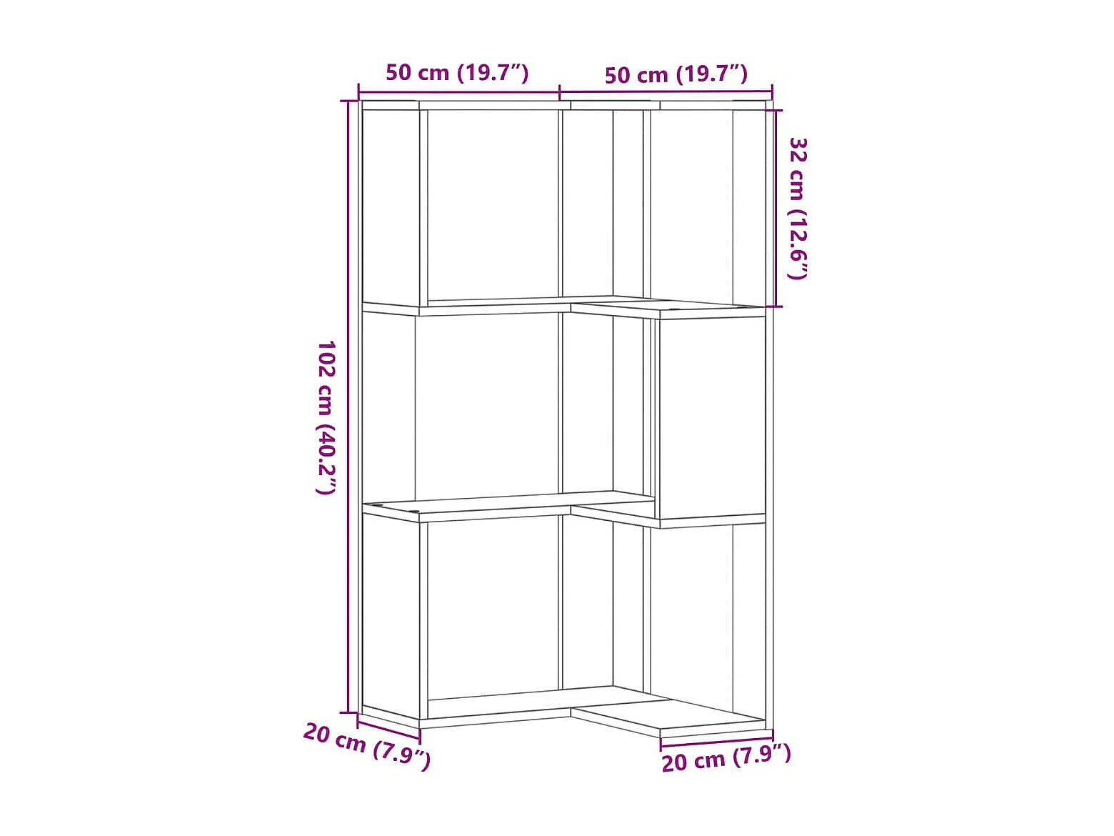 Cavit Bibliothèque d'angle à 3 niveaux vieux bois bois d'ingénierie