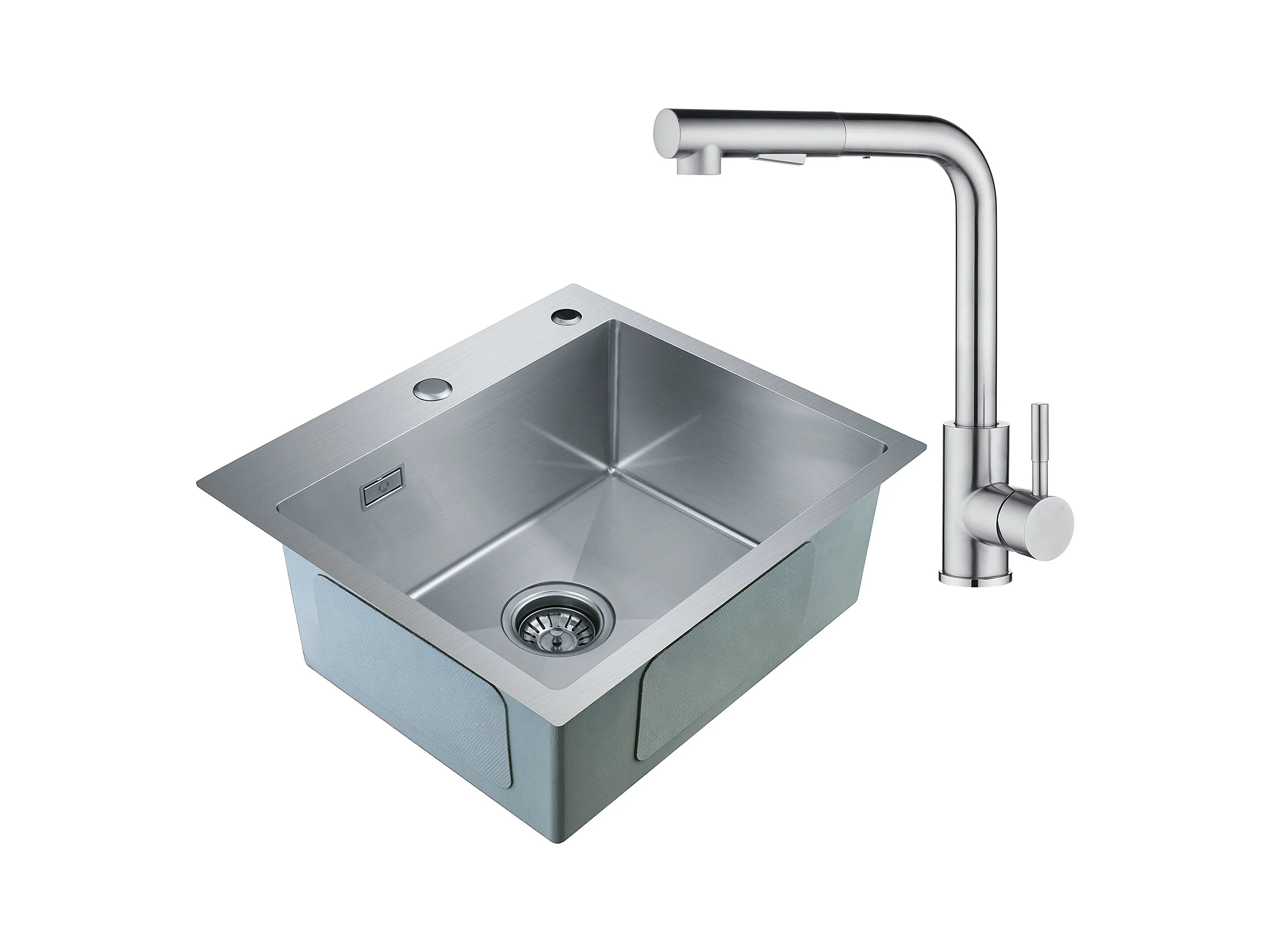 Cecipa max 2 en 1 Évier 1 Bac Inox 50 x 45 x 18,5 cm + Robinet de Cuisine Inox Extractible Chrome