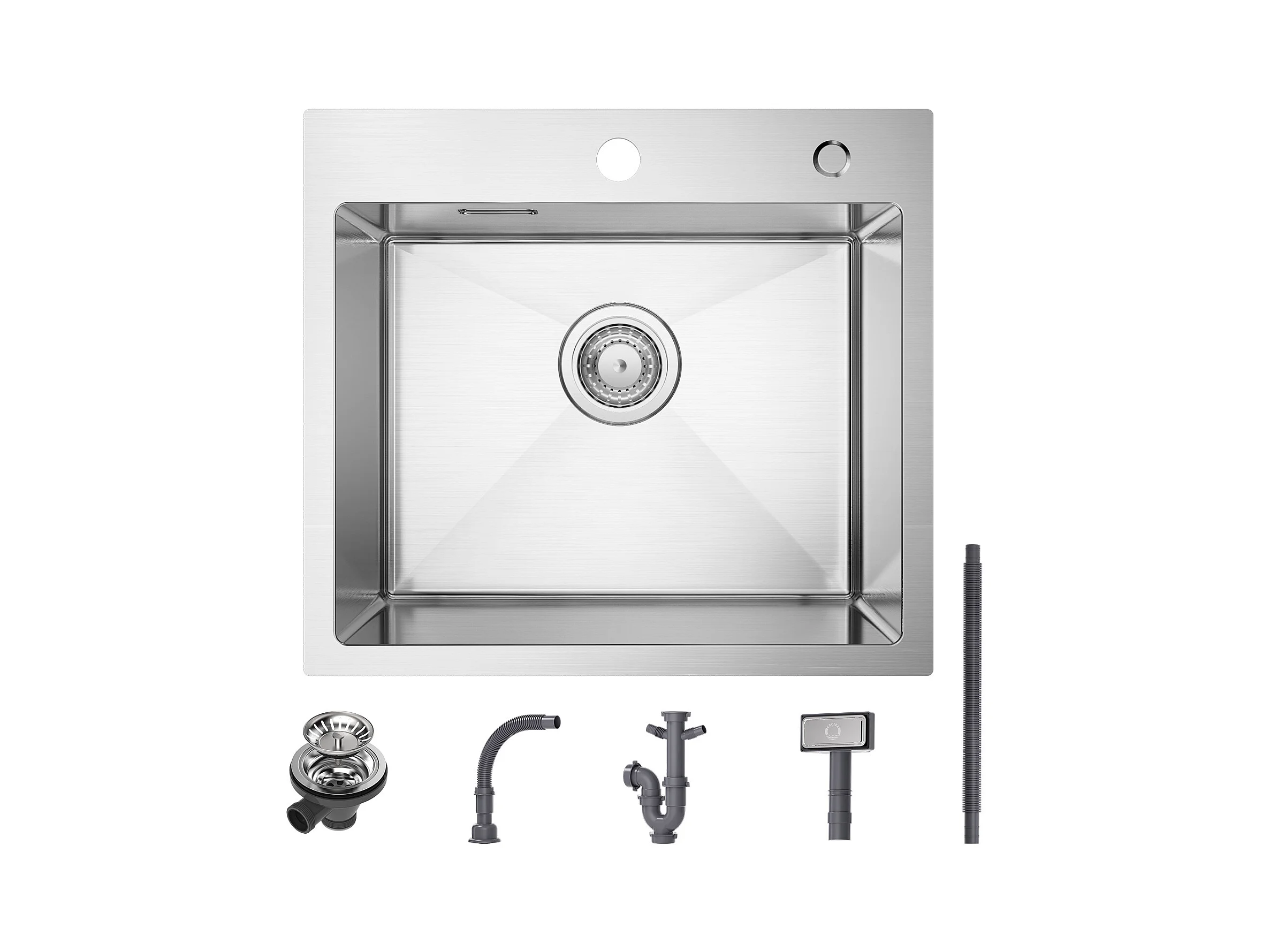 Cecipa max Évier de Cuisine + Distributeur de Savon - Évier Cuisine 1 Bac en Acier Inox Brossé 50×45×18.5CM + Distributeur de Savon