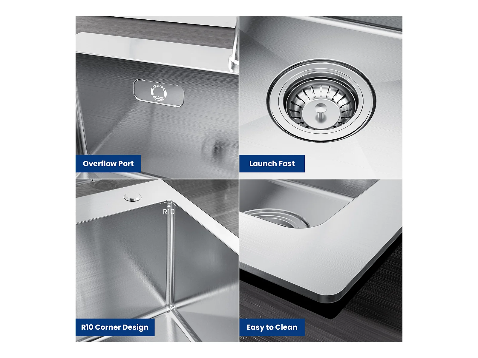 Cecipa max 2 en 1 Évier de cuisine Brossé + Distributeur de Savon de Cuisine avec Récipient de 300ML