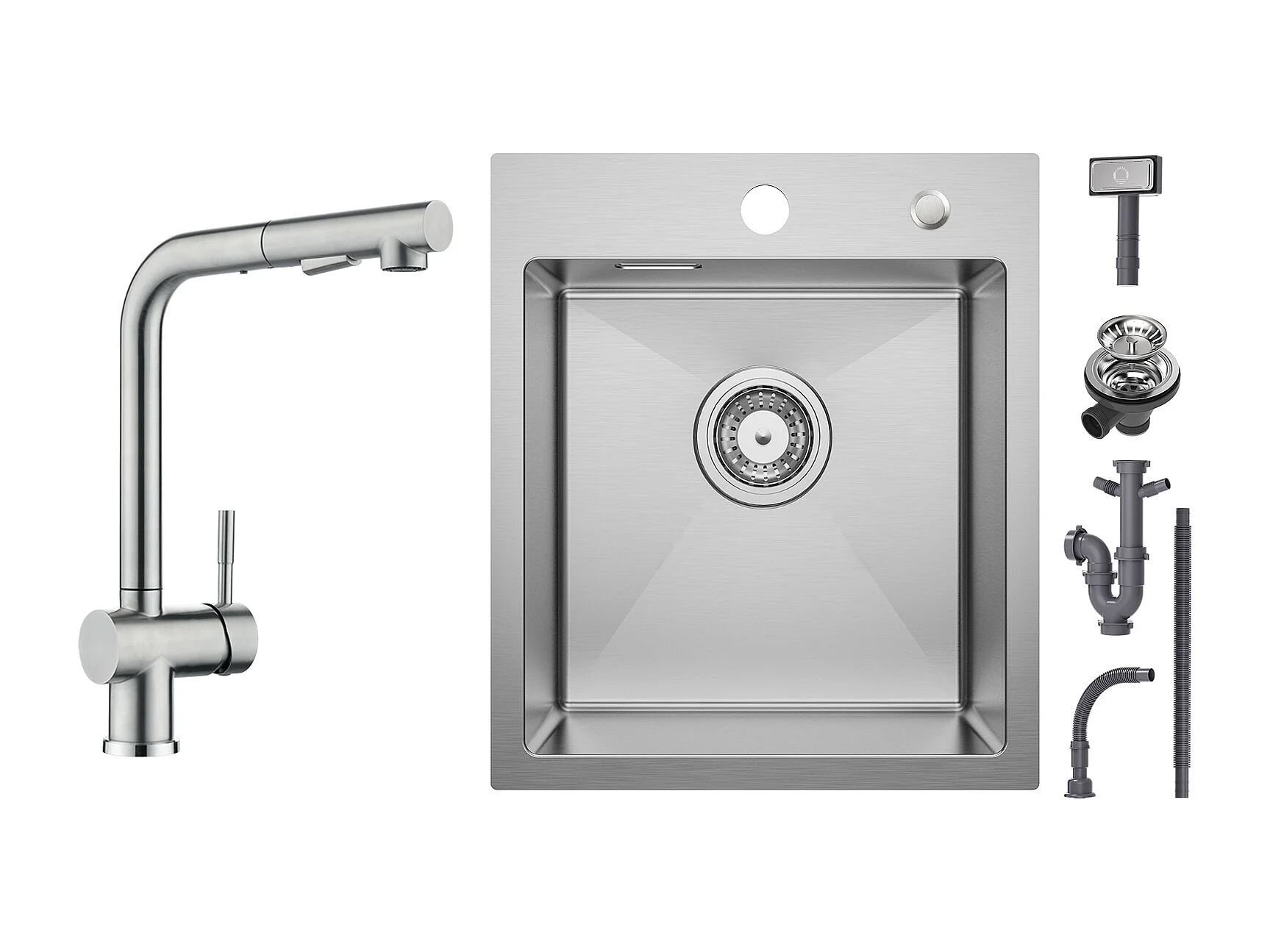 Cecipa MAX Évier Cuisine 1 Bac 40 × 45 cm Évier Inox Brossé + Mitigeur avec Douchette Extractible, Brossé