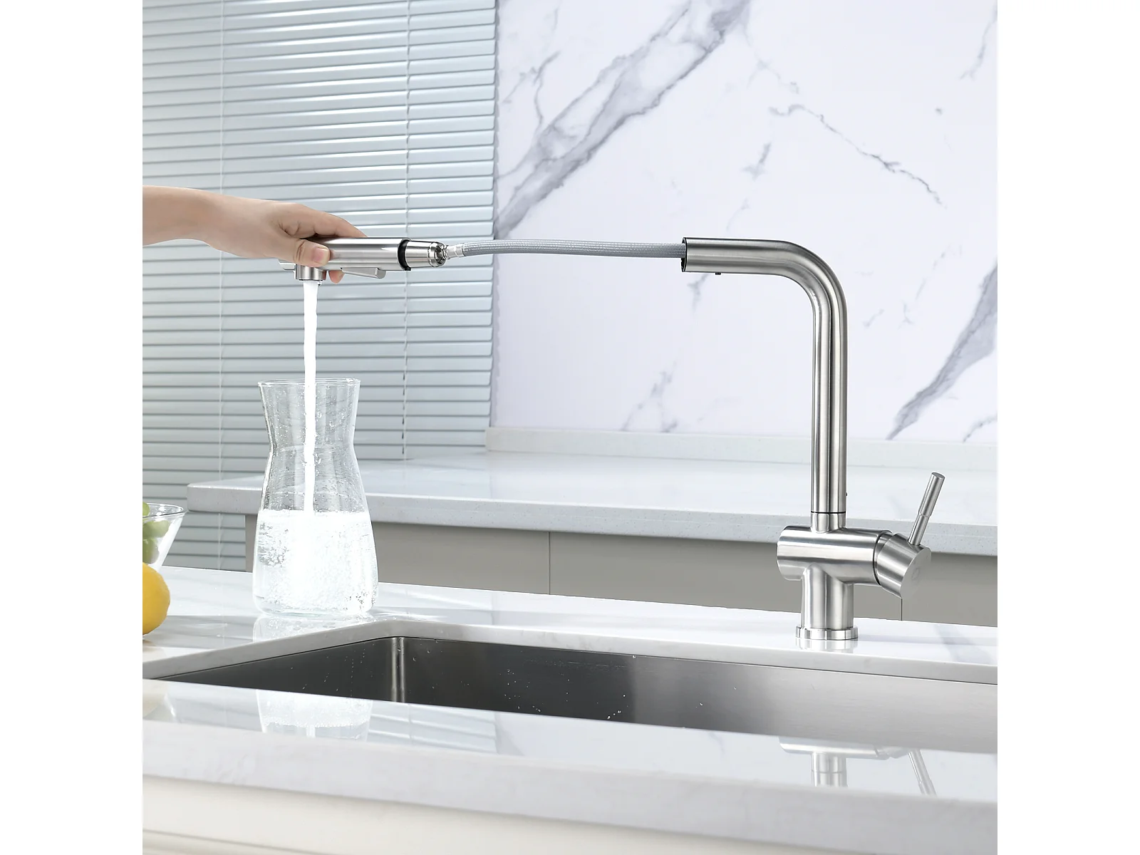 Mitigeur Évier Cuisine avec douchette extractible or brossé - Design moderne – SENA IMEX