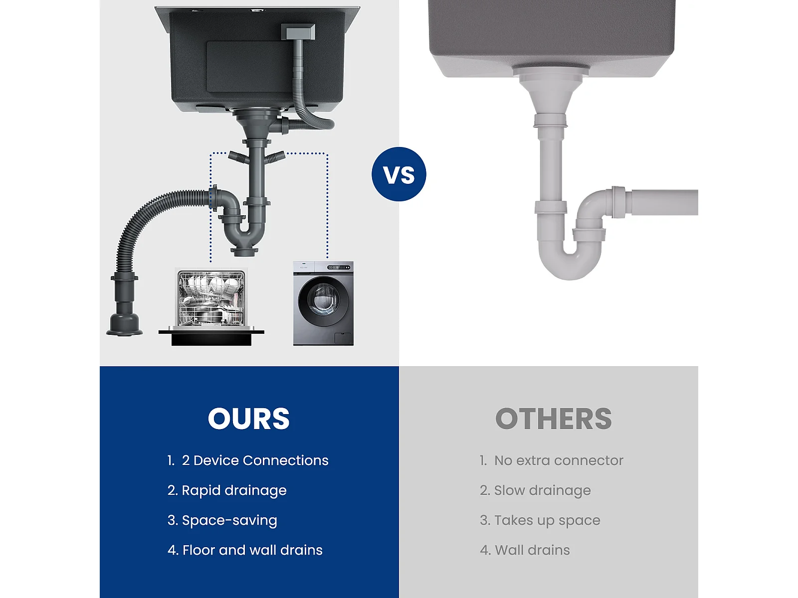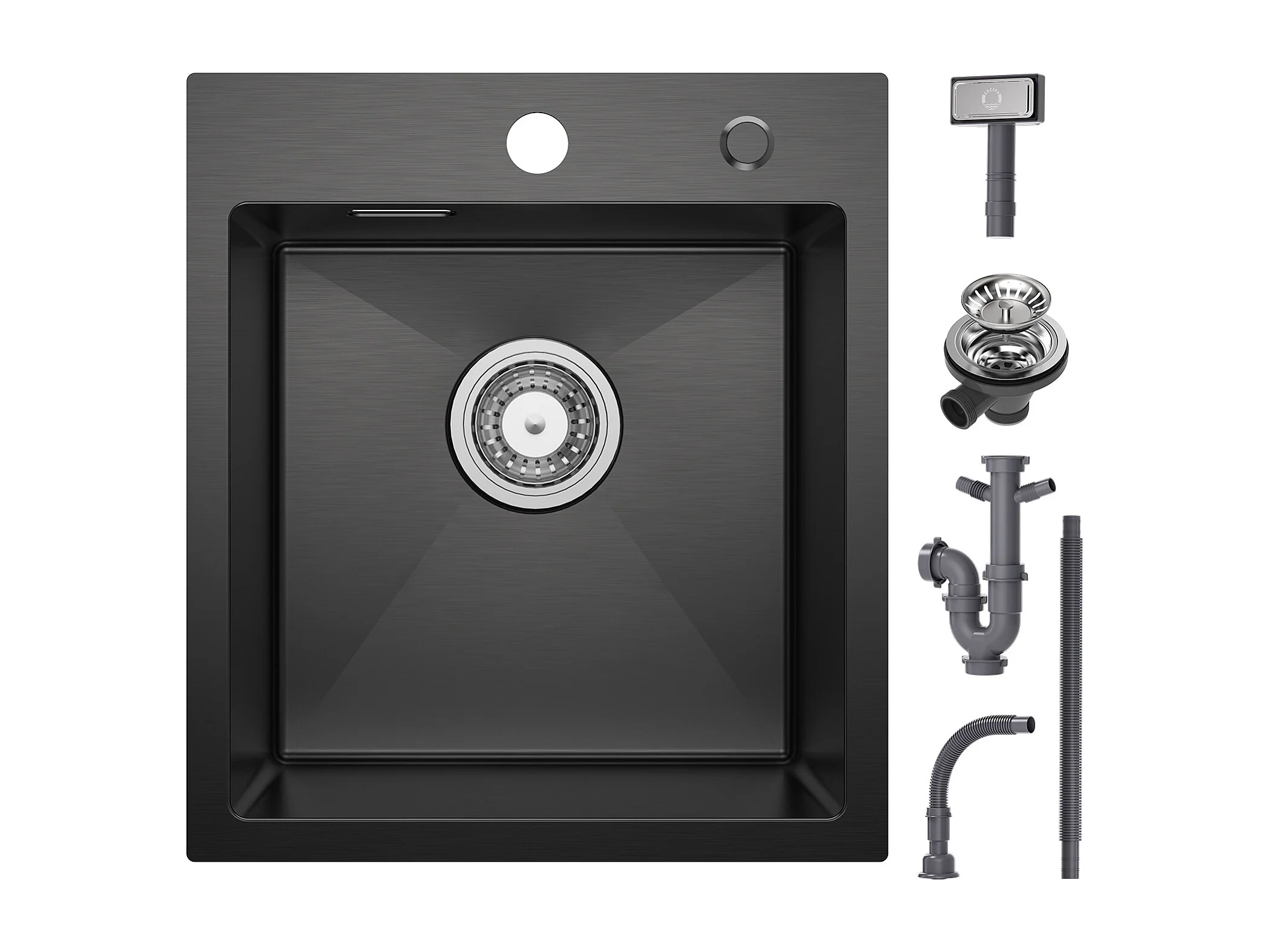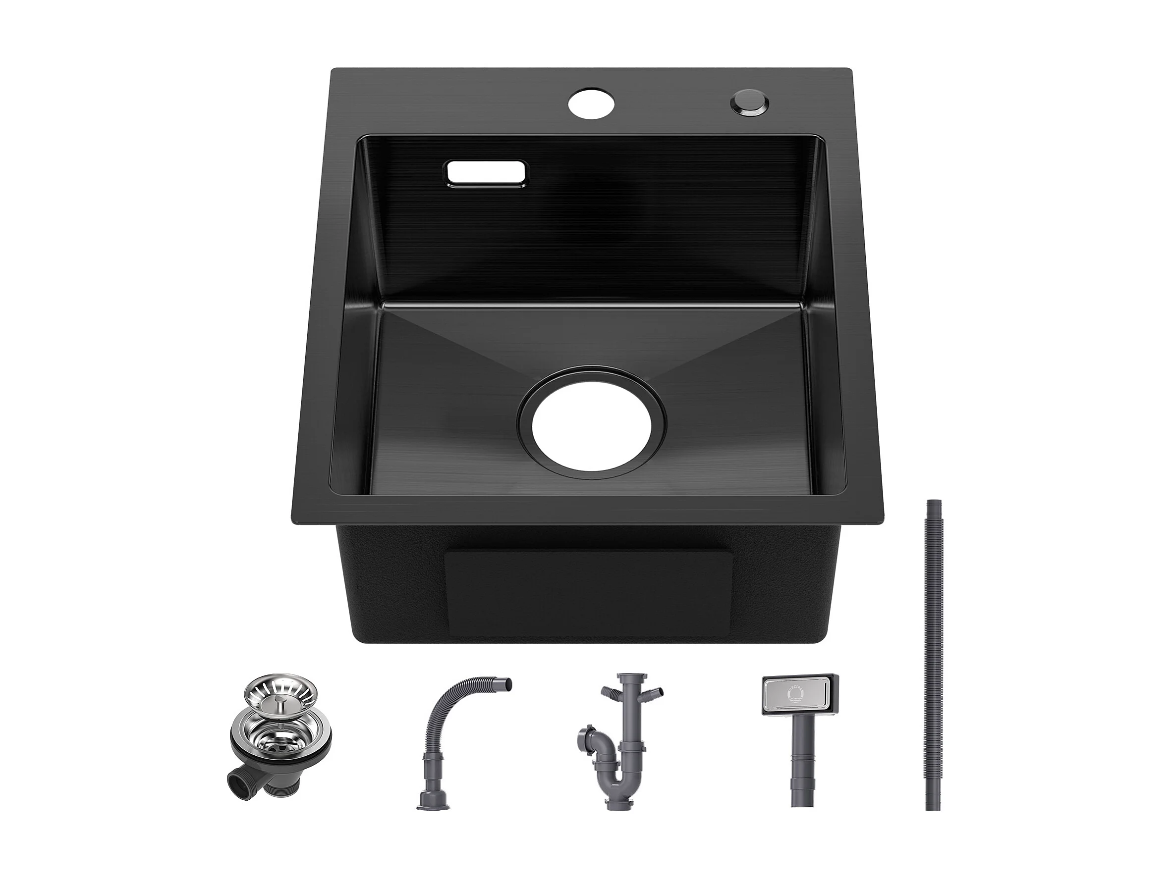 Cecipa max Evier 1 Bac Noir 40*45CM - Évier Inox 1 Cuve avec Siphon et Trop-Plein - Évier de Cuisine Montage à encastrer ou à Fleur de Plan,EU Modèle
