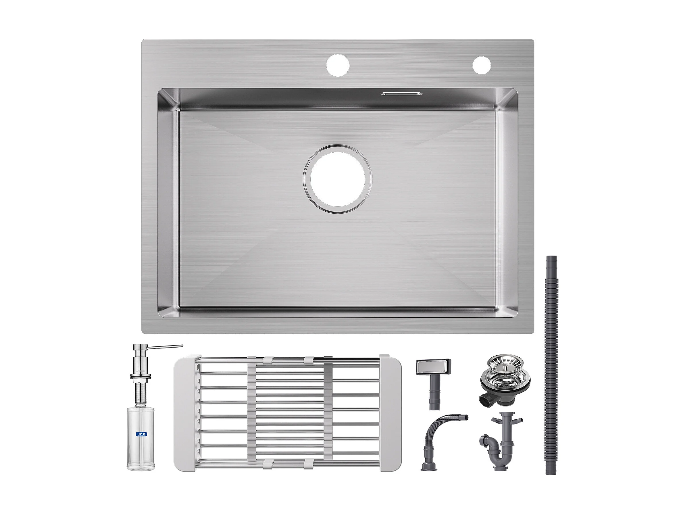 Cecipa max Évier Cuisine 1 Bac 60×45×18CM Évier Inox Brossé avec Panier de Drainage + Robinet Cuisine Rabattable Mitigeur de Evier Repliable Brossé