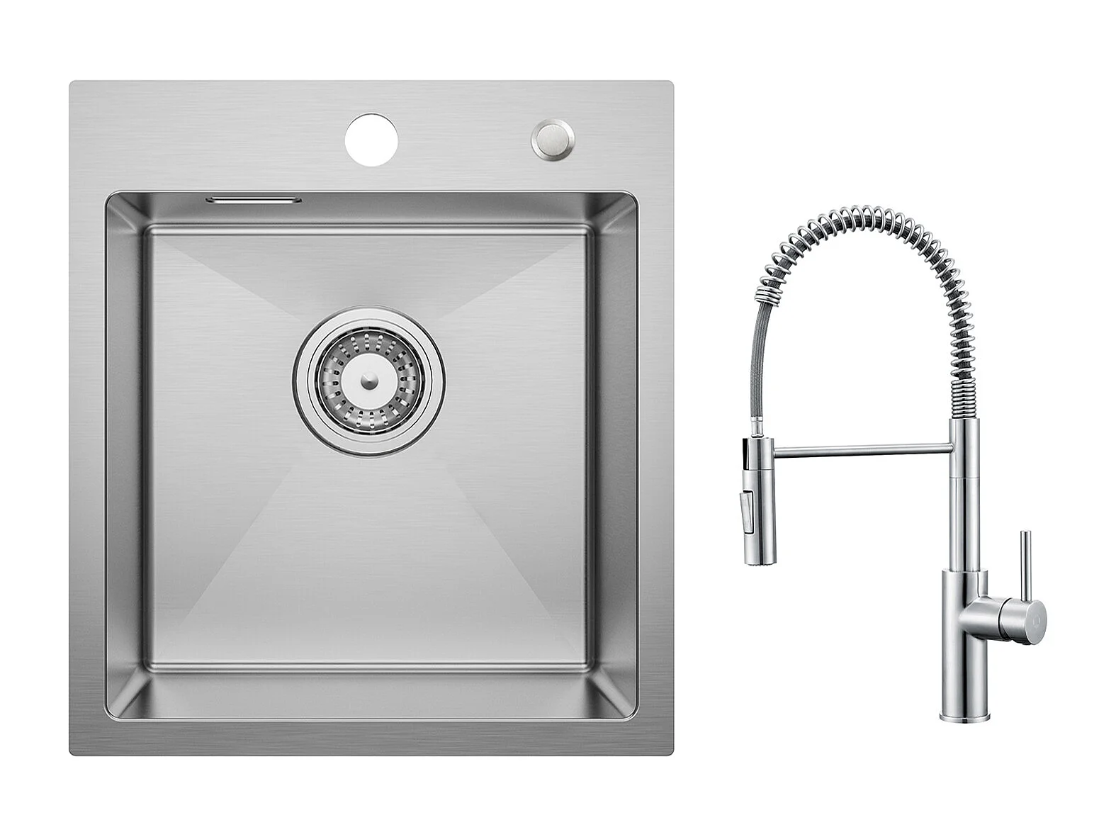 Cecipa MAX Évier Cuisine 1 Bac 40 × 45 cm Évier Inox Brossé + Mitigeur avec Douchette Extractible, Brossé