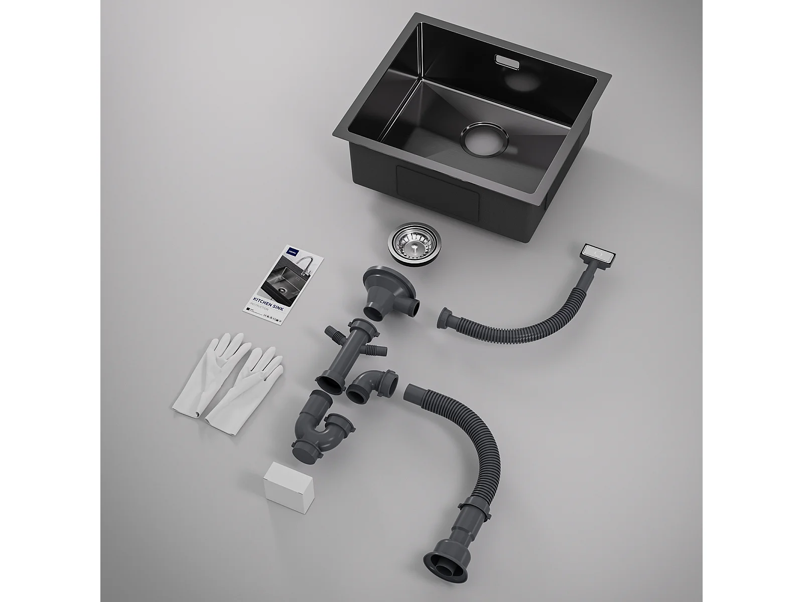Cecipa max Évier Encastré 50*44CM Évier de Cuisine 1 Bac Évier de Cuisine En Acier Inoxydable - 201 Nanomètre Noir,EU Modèle