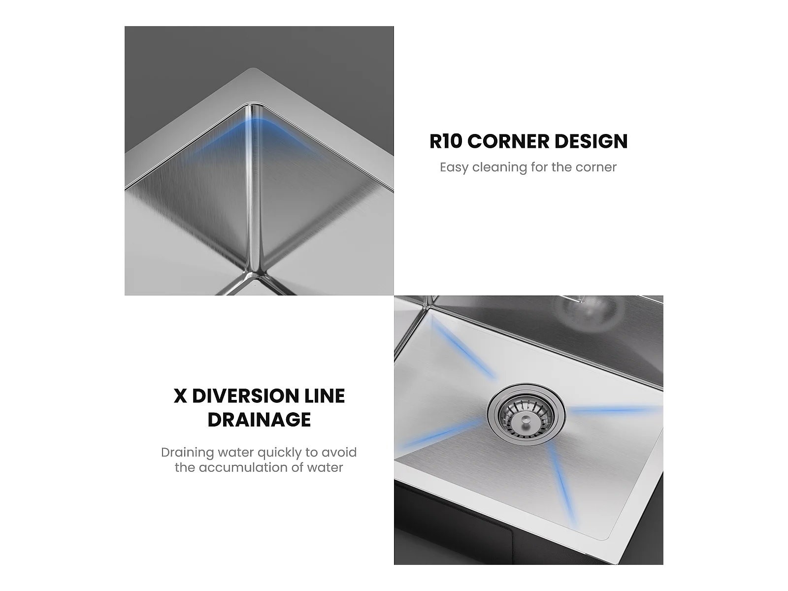 Cecipa max Évier Encastré 50*44CM Évier de Cuisine 1 Bac Évier de Cuisine En Acier Inoxydable 304 Brossé,EU Modèle