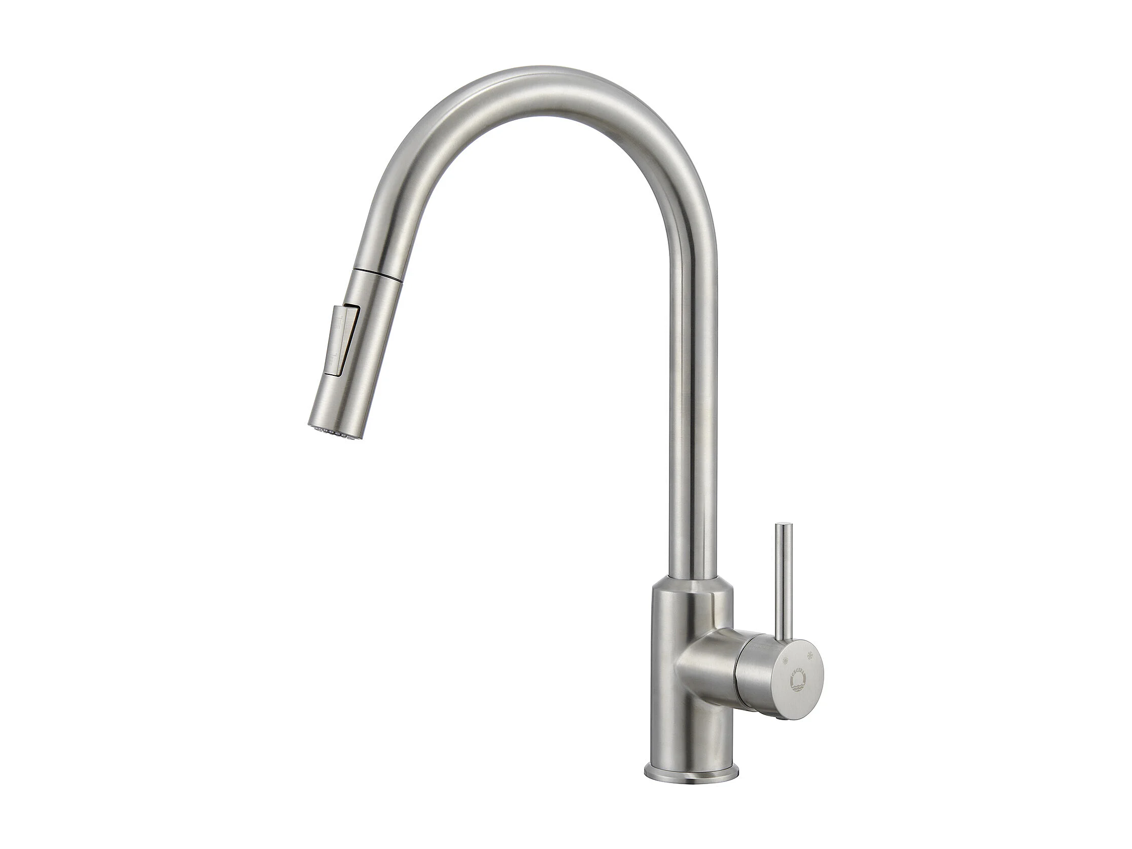 Mitigeur de Cuisine Brossé AuraLum Max pivotant 360° avec Tête Pulvérisation Rétractable,Robinet Cuisine à ressort,Inoxydable,Double Mode,EU Modèle