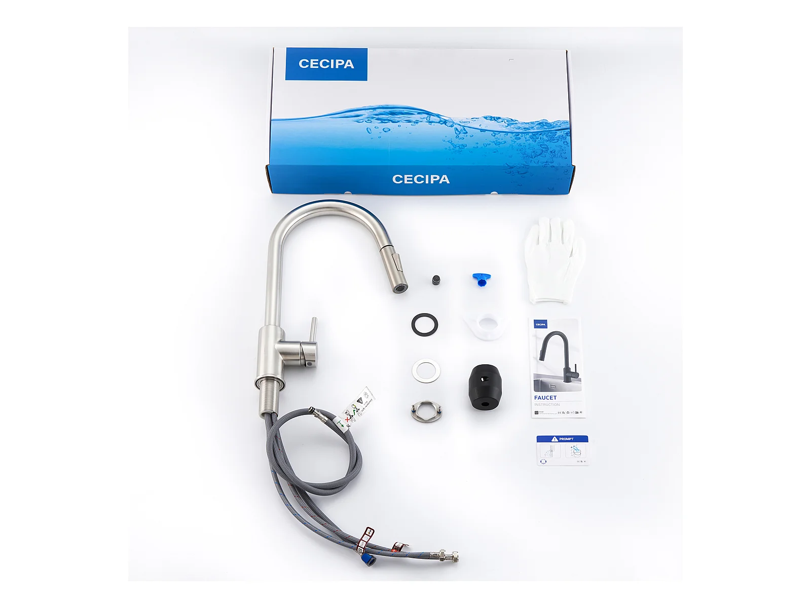 2PCS Cecipa max Mitigeur Cuisine avec Douchette Extractible Robinet Cuisine avec 2 Mode Jets Robinetterie en Acier Brossé Haute Qualité,EU Modèle