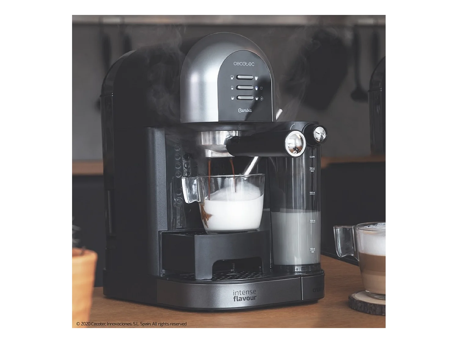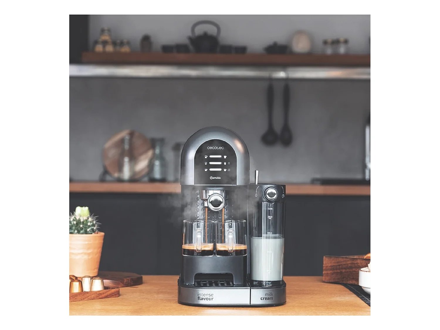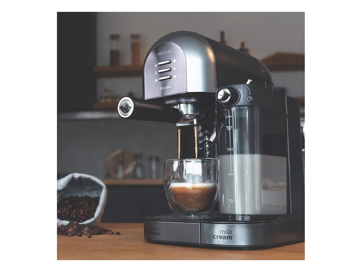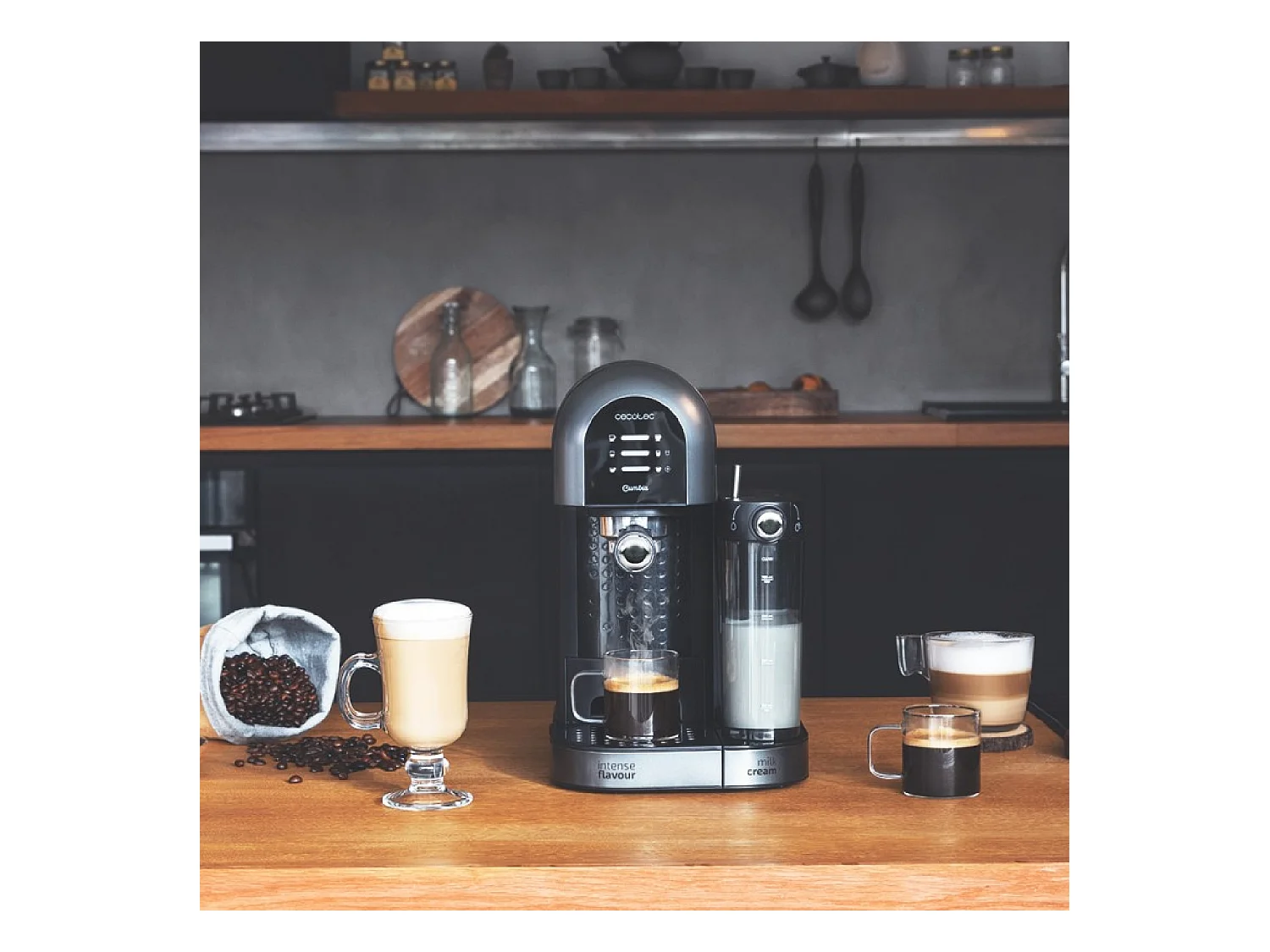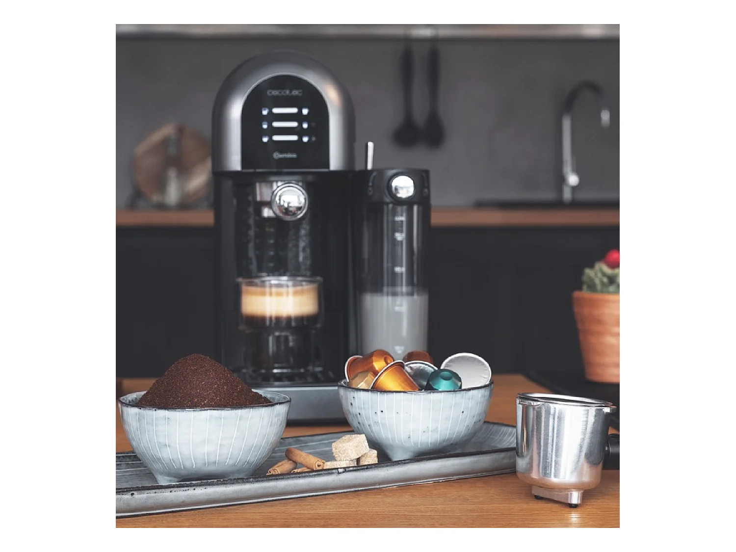Cecotec Cafetière Semiautomatique Power Instant-ccino 20 Chic Serie Nera. 1470 W, Café moulu et capsules, 20 Bars, Réservoir à lait de 0,7L, Réservoir d'eau 1,7L