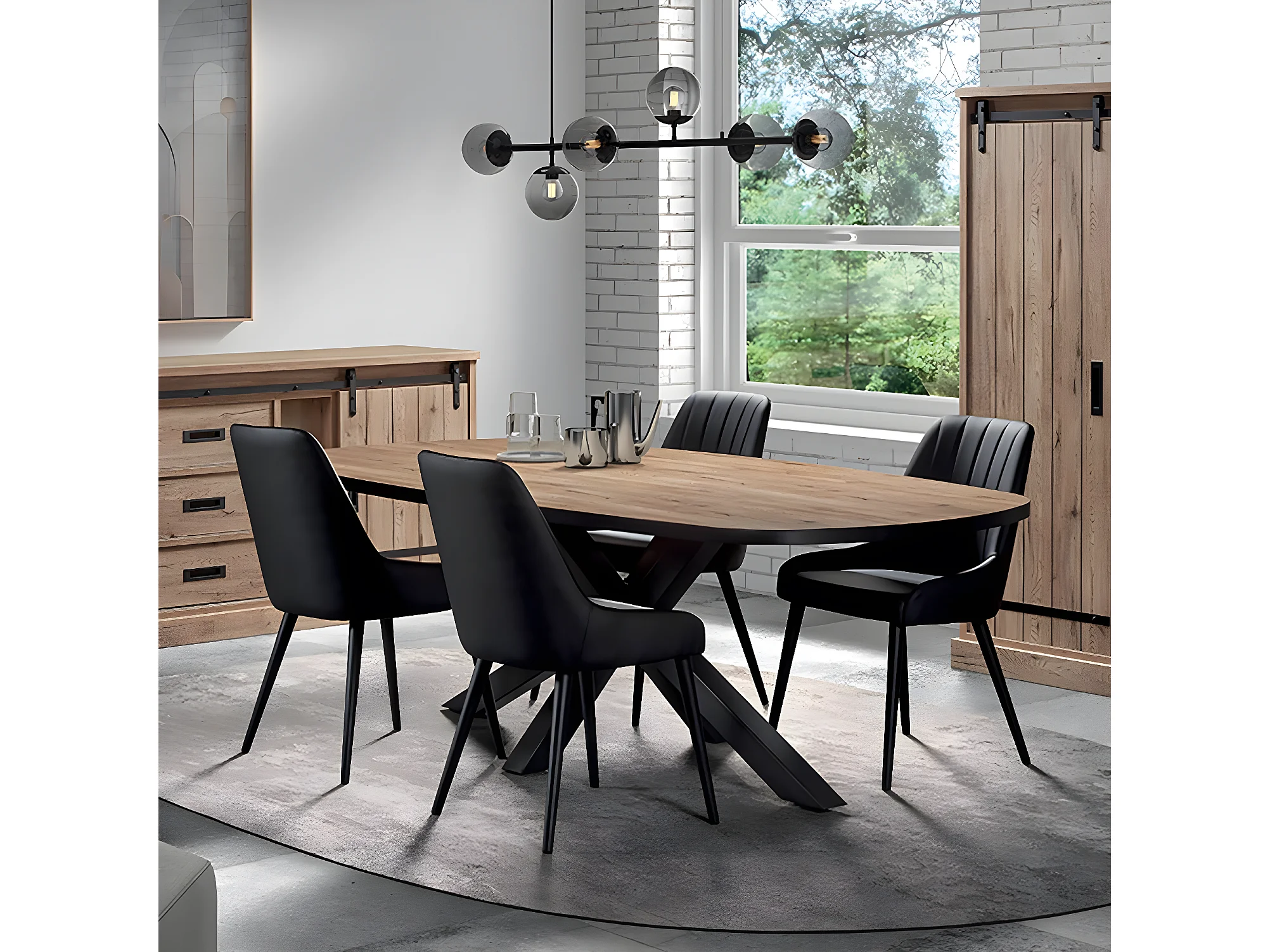 CEDRA - Table Repas Ovale 200cm Aspect Bois Piètement Métal
