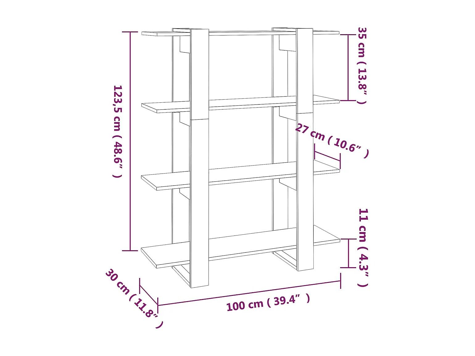 Celin Bibliothèque/Séparateur de pièce Sonoma gris 100x30x123,5 cm