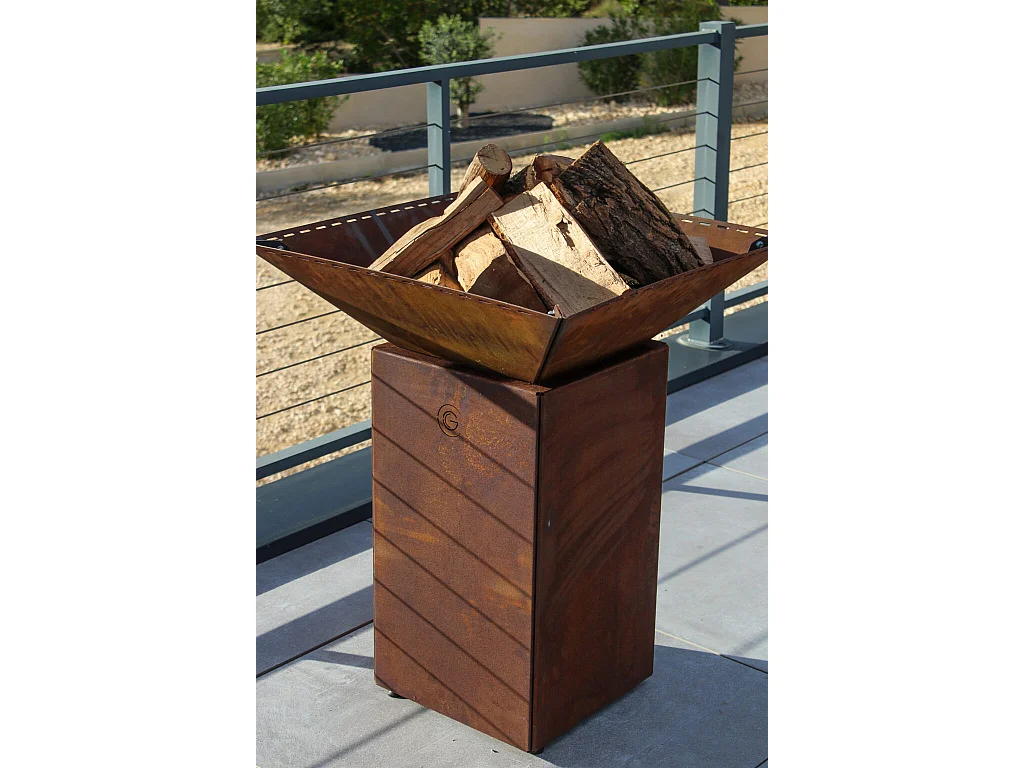 CEVENOL Simple Cuve Corten - Bol à feu carré - Sans rangement bois - Robuste et esthétique pour une intégration parfaite en extérieur