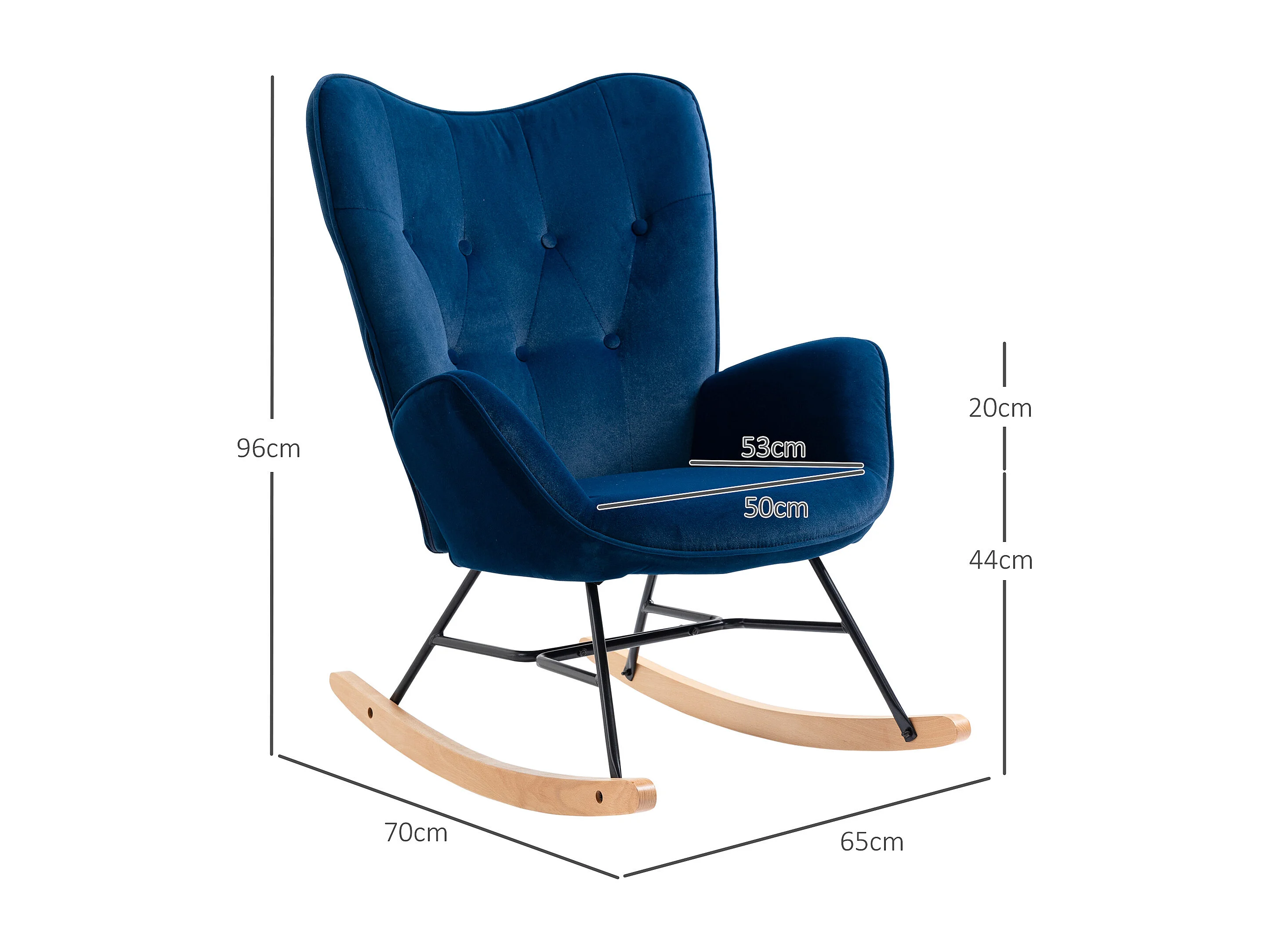Chaise à bascule avec dossier haut, confort optimal, tissu velours, bleu (65x70x96 cm)