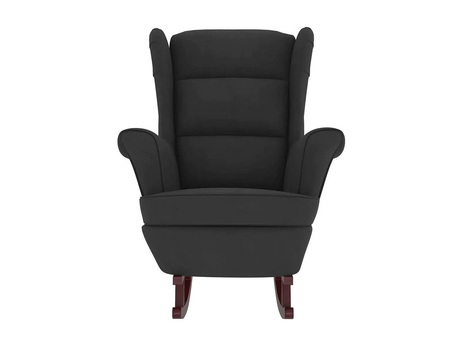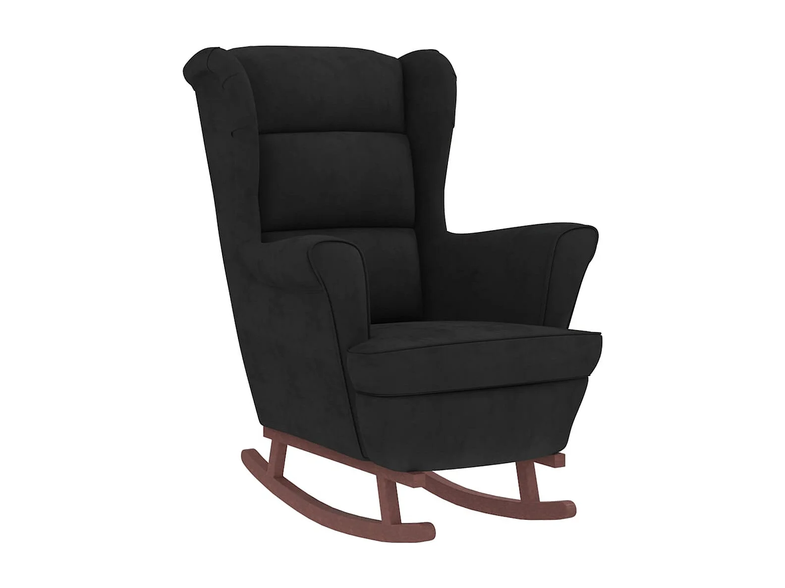 Fauteuil à bascule à oreilles en velours noir bois massif