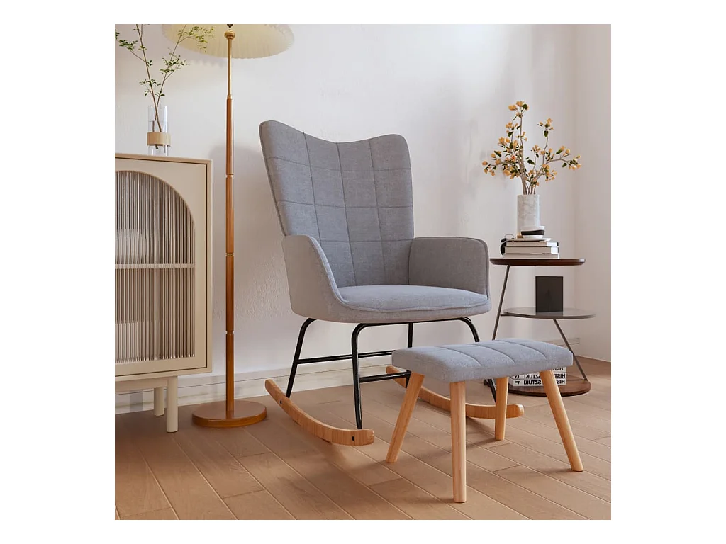 Chaise à bascule avec tabouret Gris clair Tissu