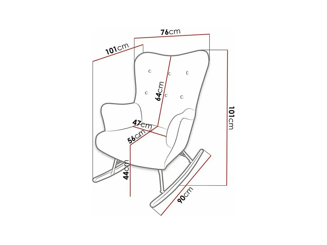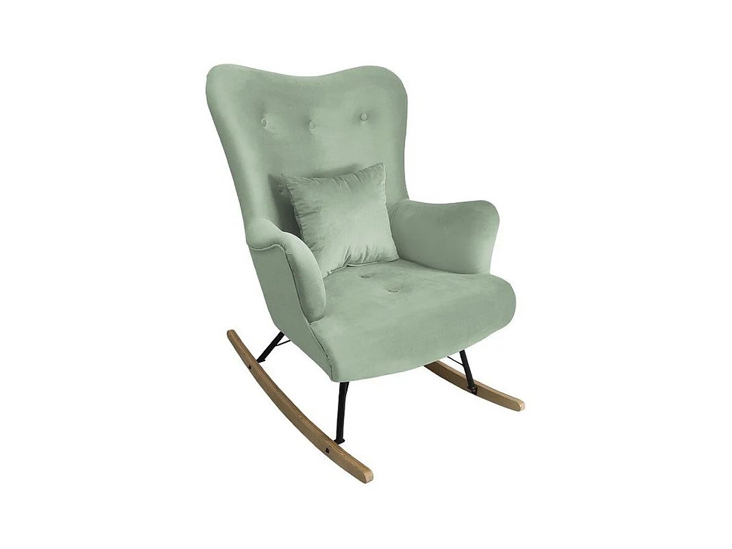 Chaise à bascule Clovis 101, 101x76x101cm, Tapisserie, Placage de bois naturel