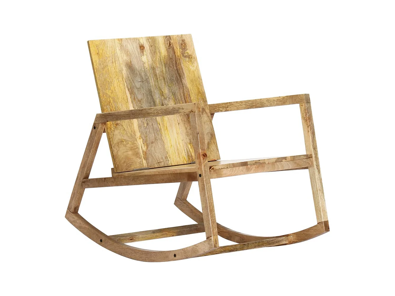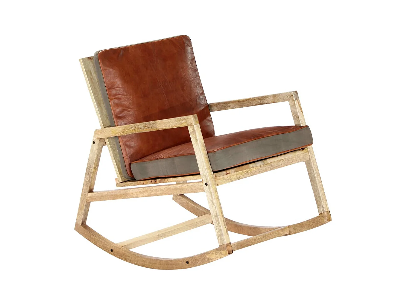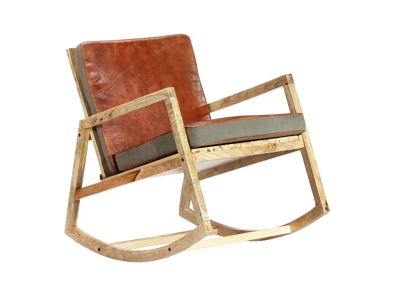 Chaise à bascule Marron Cuir véritable et manguier massif