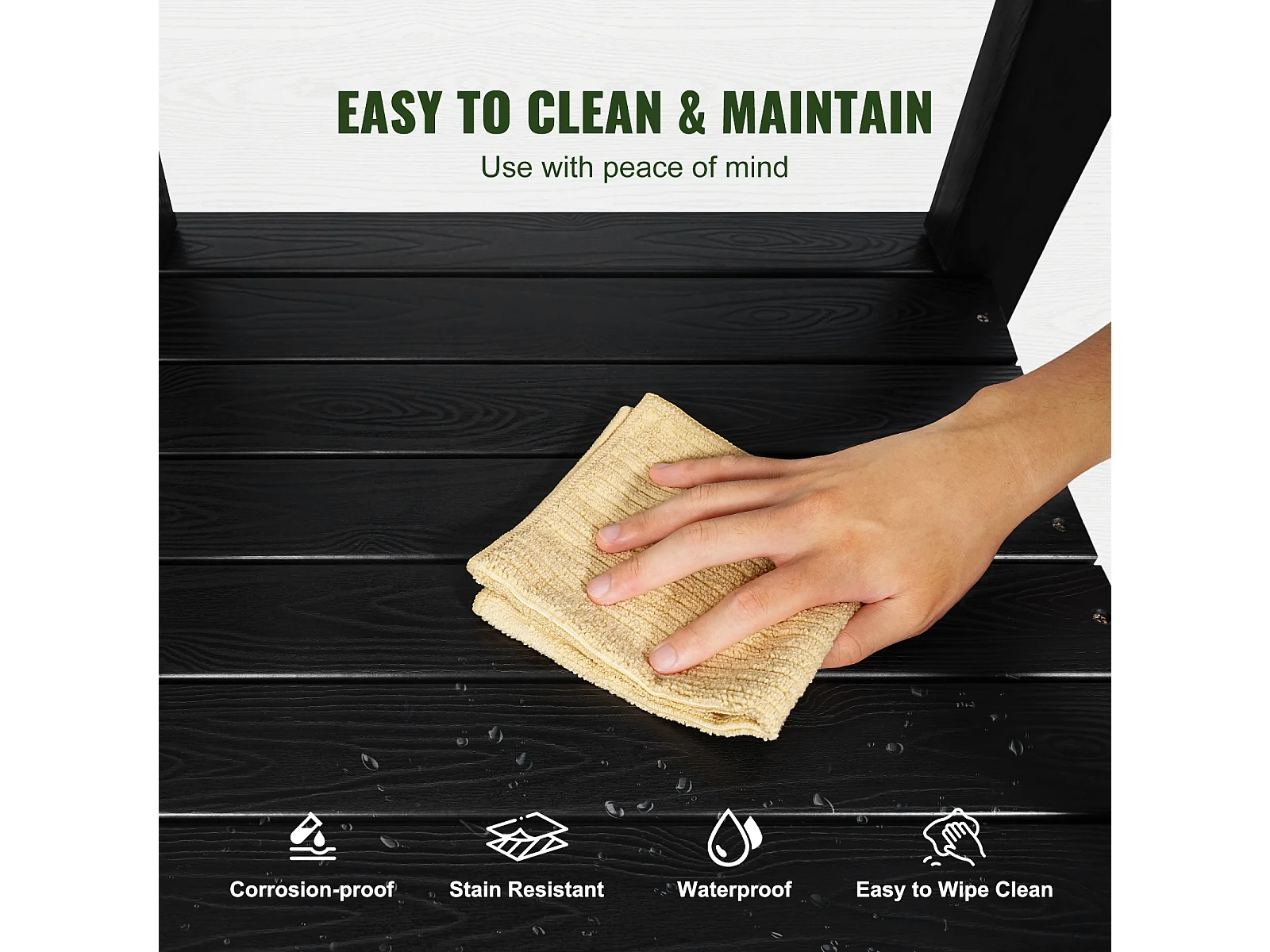 Fauteuil de Jardin, Chaise Adirondack Pliable, Repose-Pieds Rétractable, Dossier Réglable, Porte-gobelet, Chaise Longue HIPS, 119 × 78 cm, Charge 180 kg, Noir