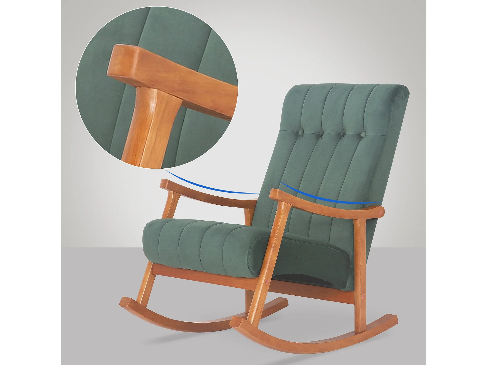 Fauteuil à bascule - Velours - Noyer / Vert - Saltillo