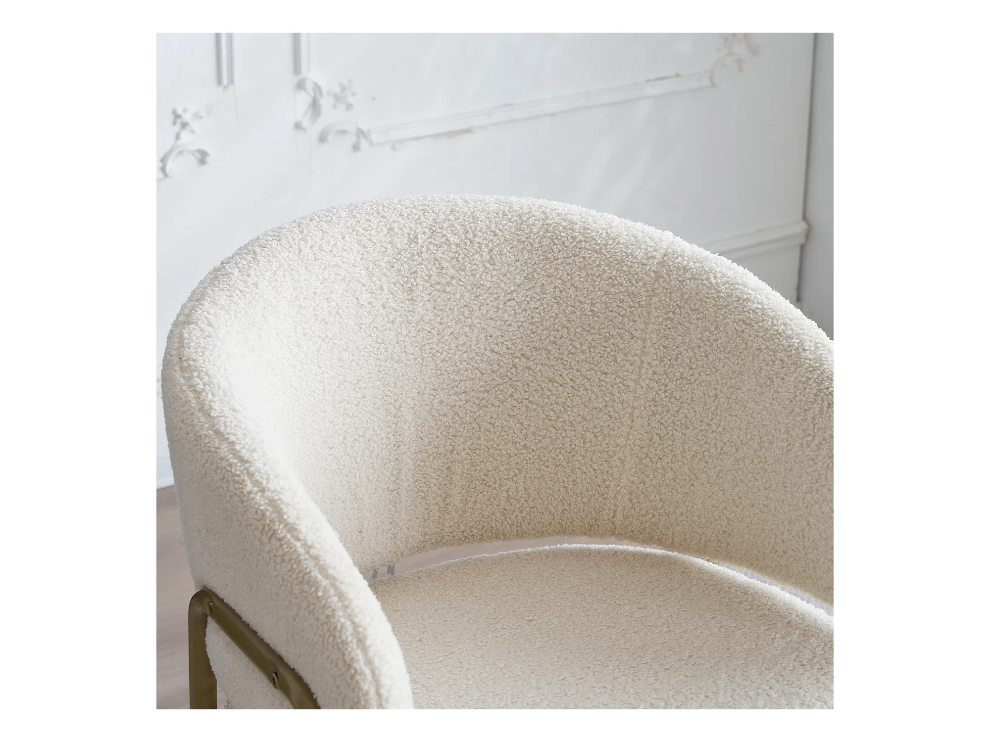 Chaises avec accoudoirs en Tissu pelucheux imitation laine blanc avec pieds en métal doré