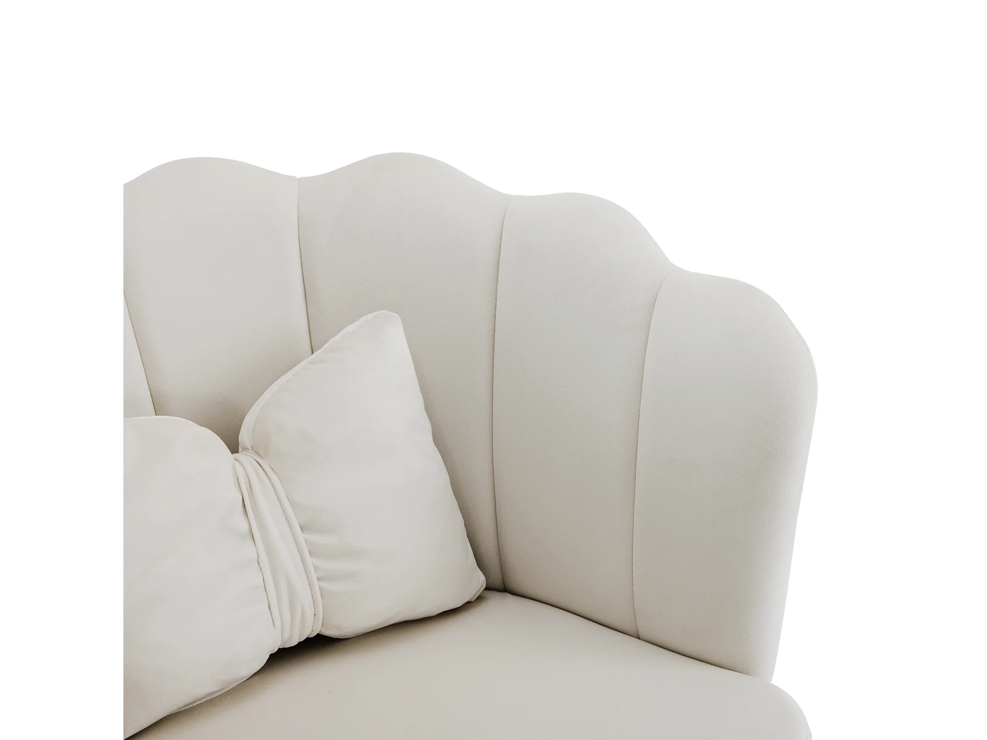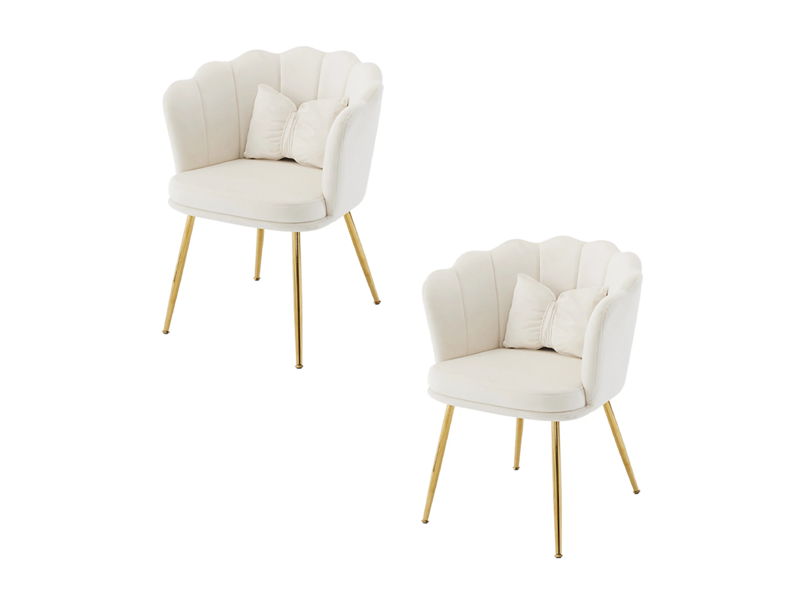 Chaise à manger en velours rembourré 2 pièces avec coussin et pieds en métal - dossier en pétales - bois - beige