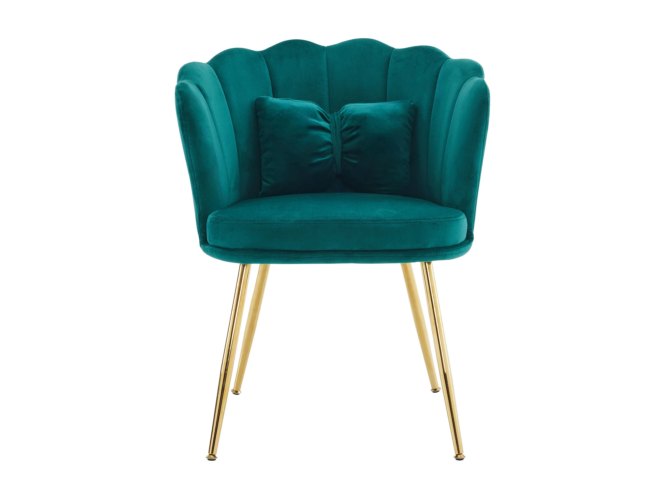 Chaise à manger en velours rembourré avec coussin et pieds en métal - dossier en pétales - bois - vert