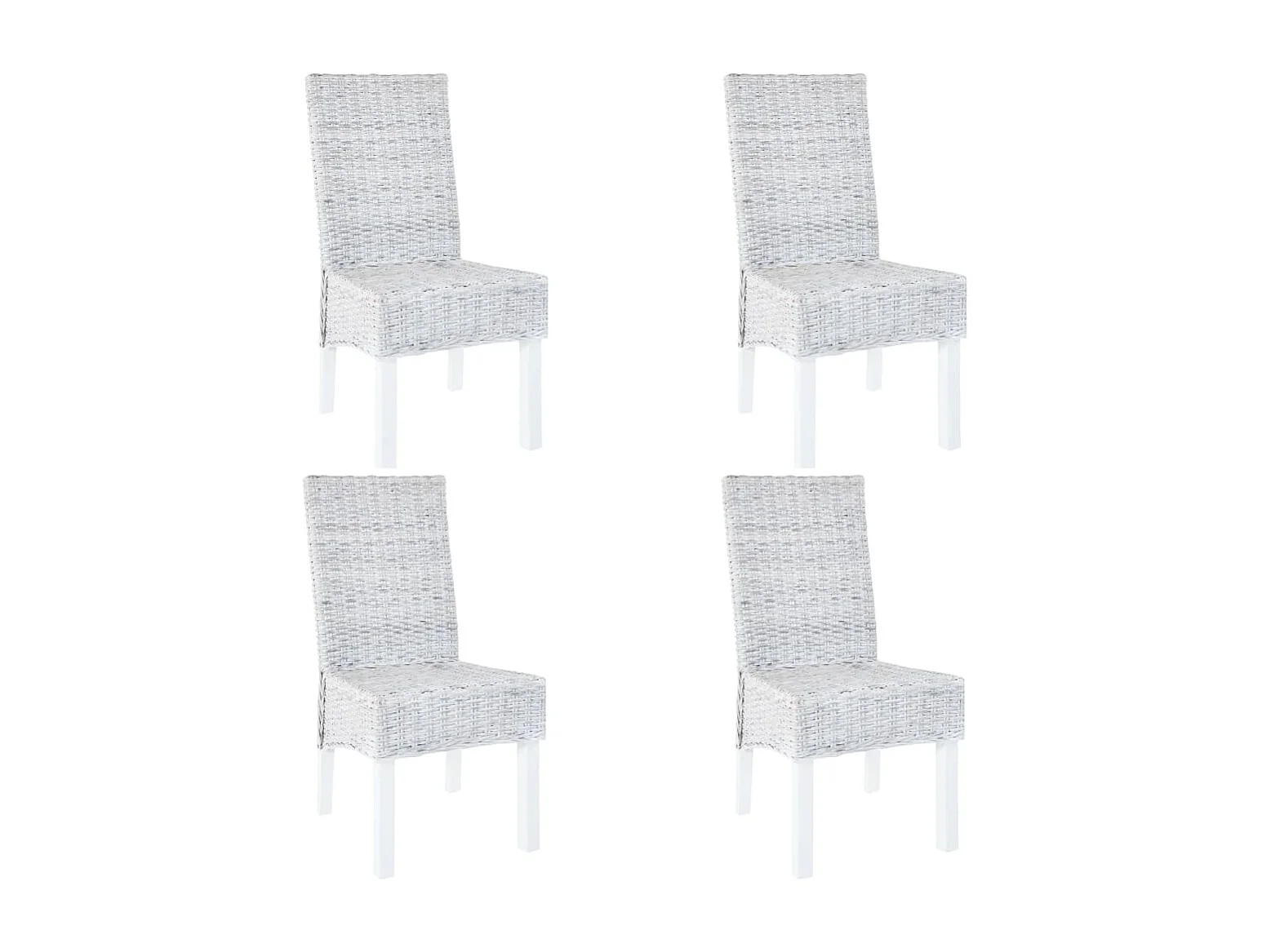 Chaise à manger lot de 4 blanc rotin Kubu et bois de manguier