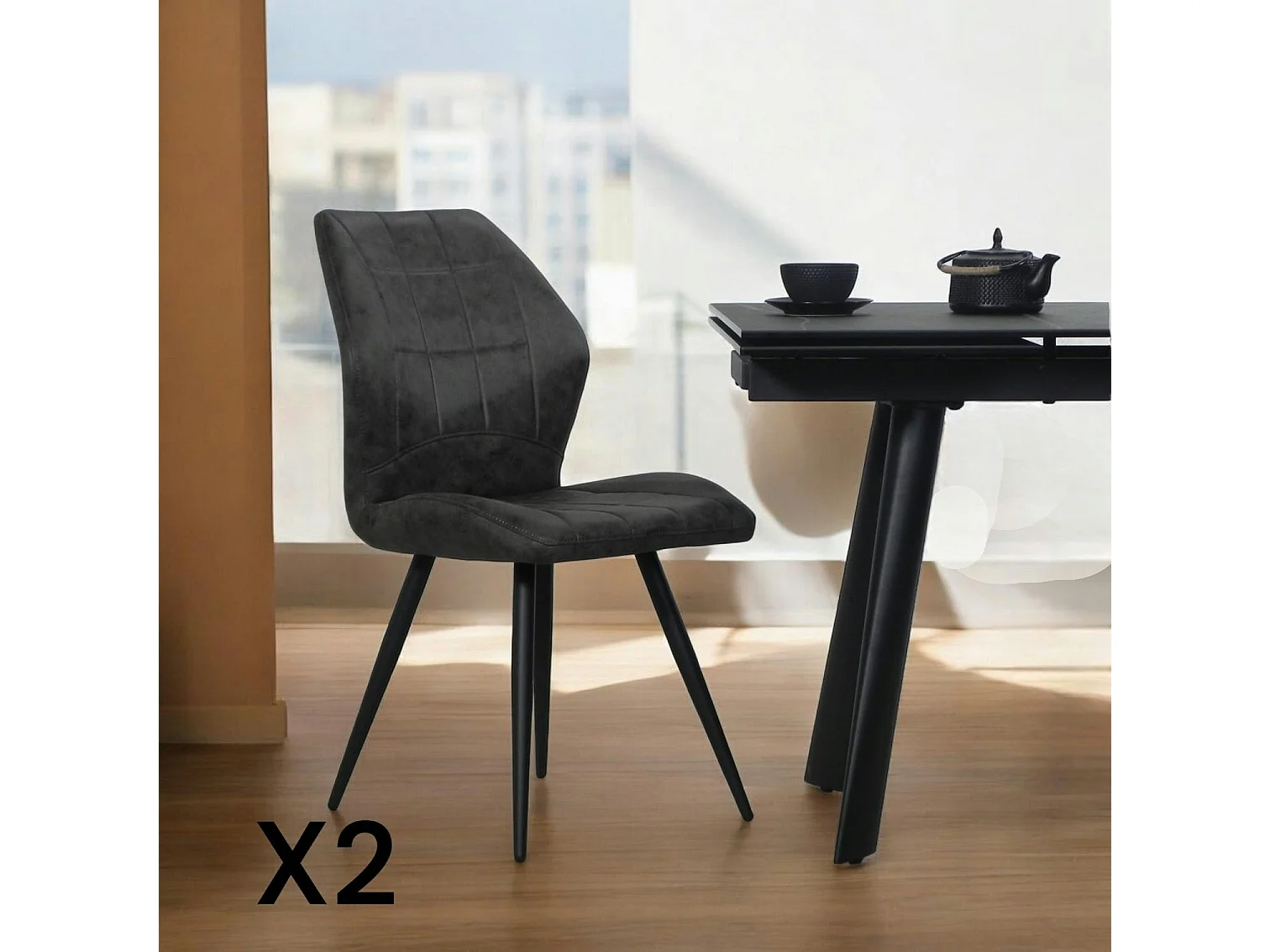 Chaise anthracite motif damier (lot de 2) LOMBARDIE