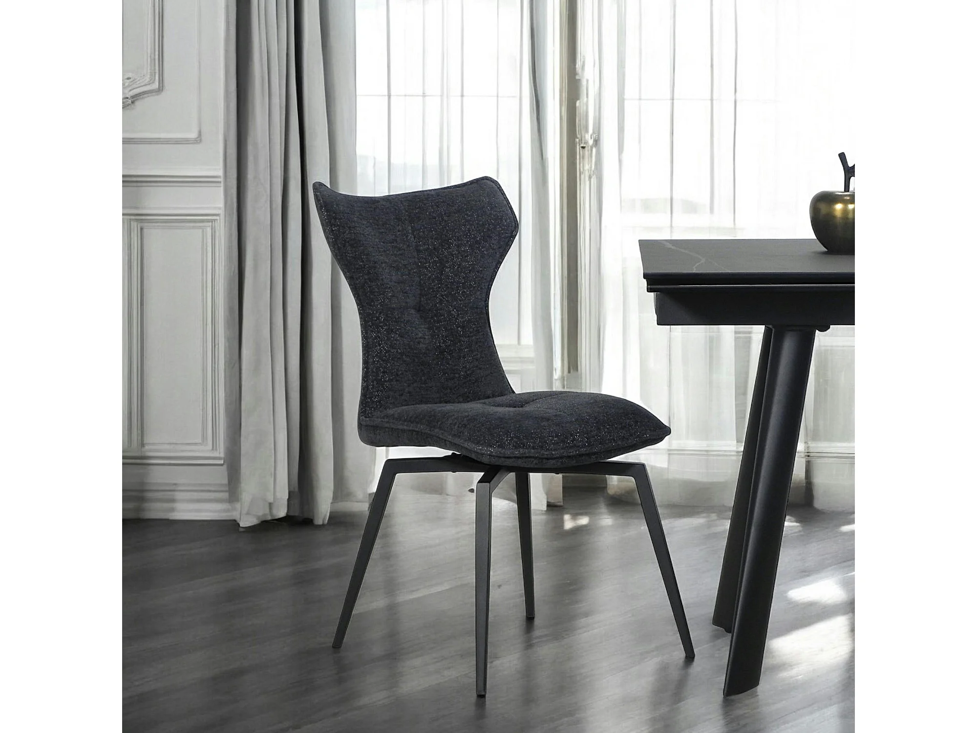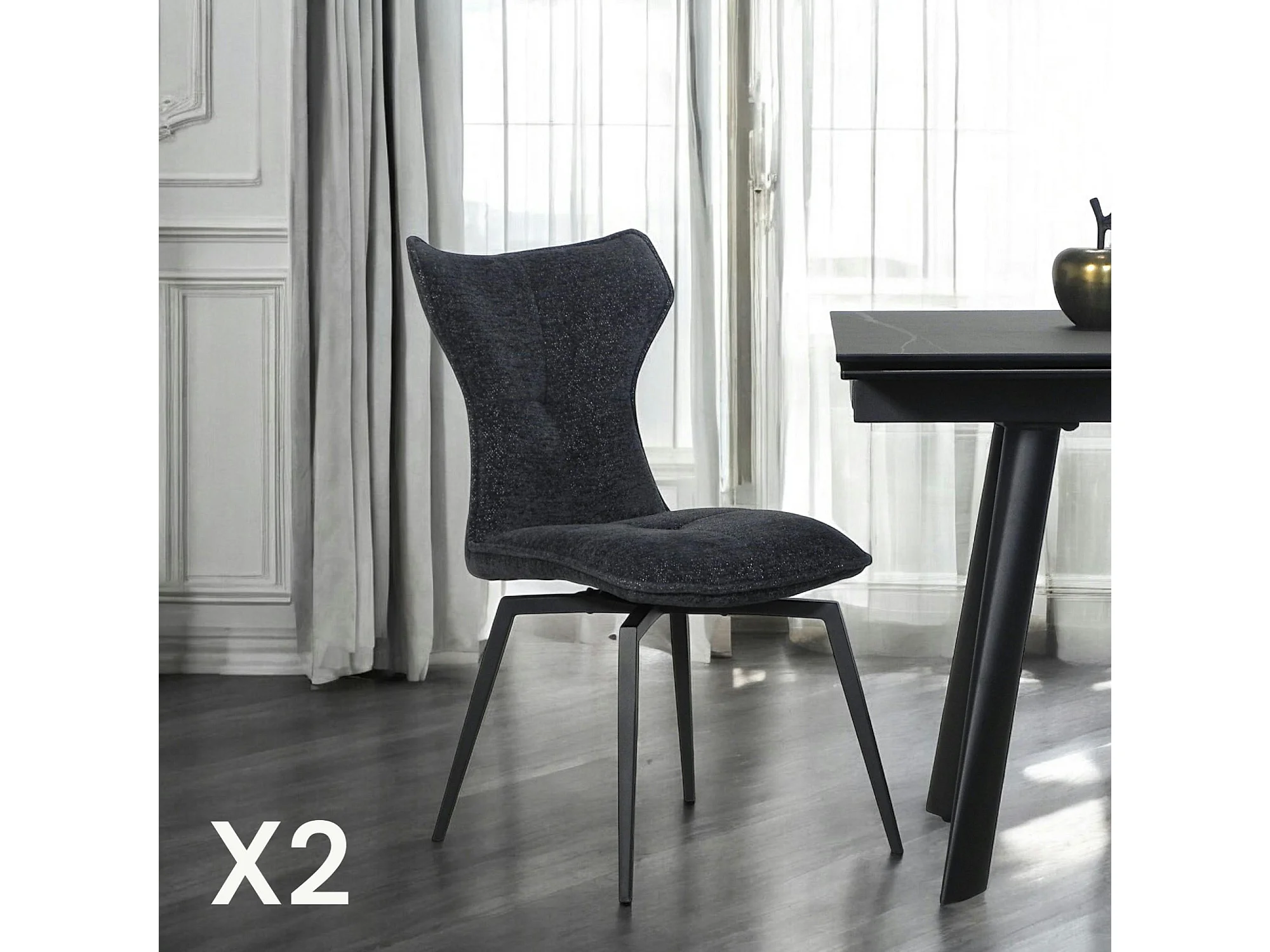 Chaise anthracite pivotante en velours avec passepoil (lot de 2) LOMBARDIE