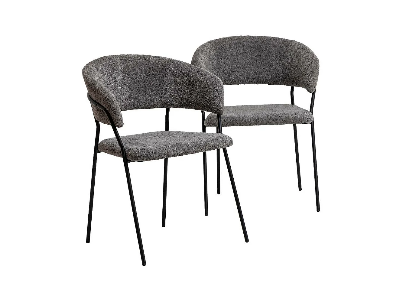 Chaise arrondie en tissu bouclette grise Kanoa (lot de 2)