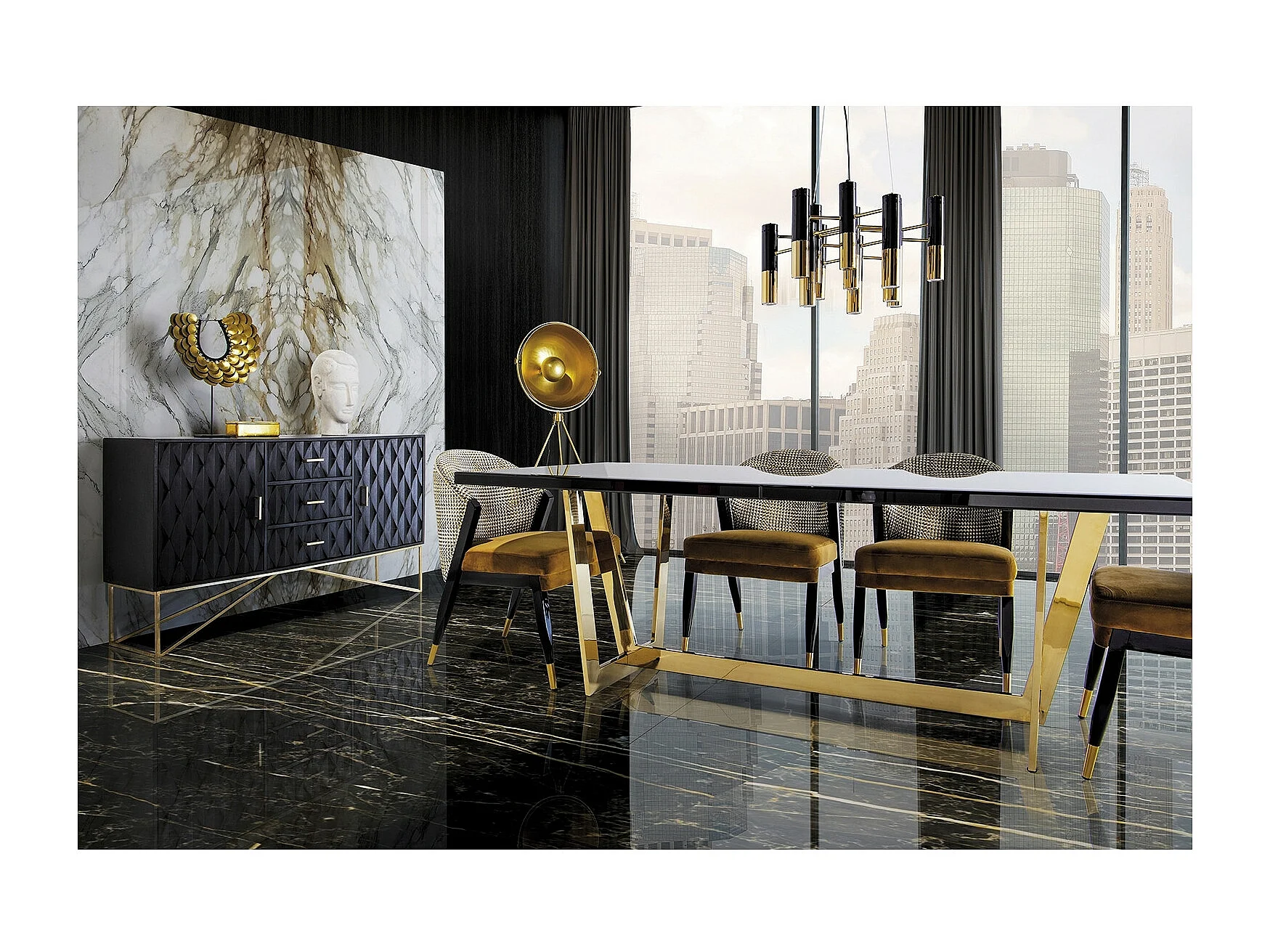 Chaise art déco velours moutarde et pieds bois massif noir Bari