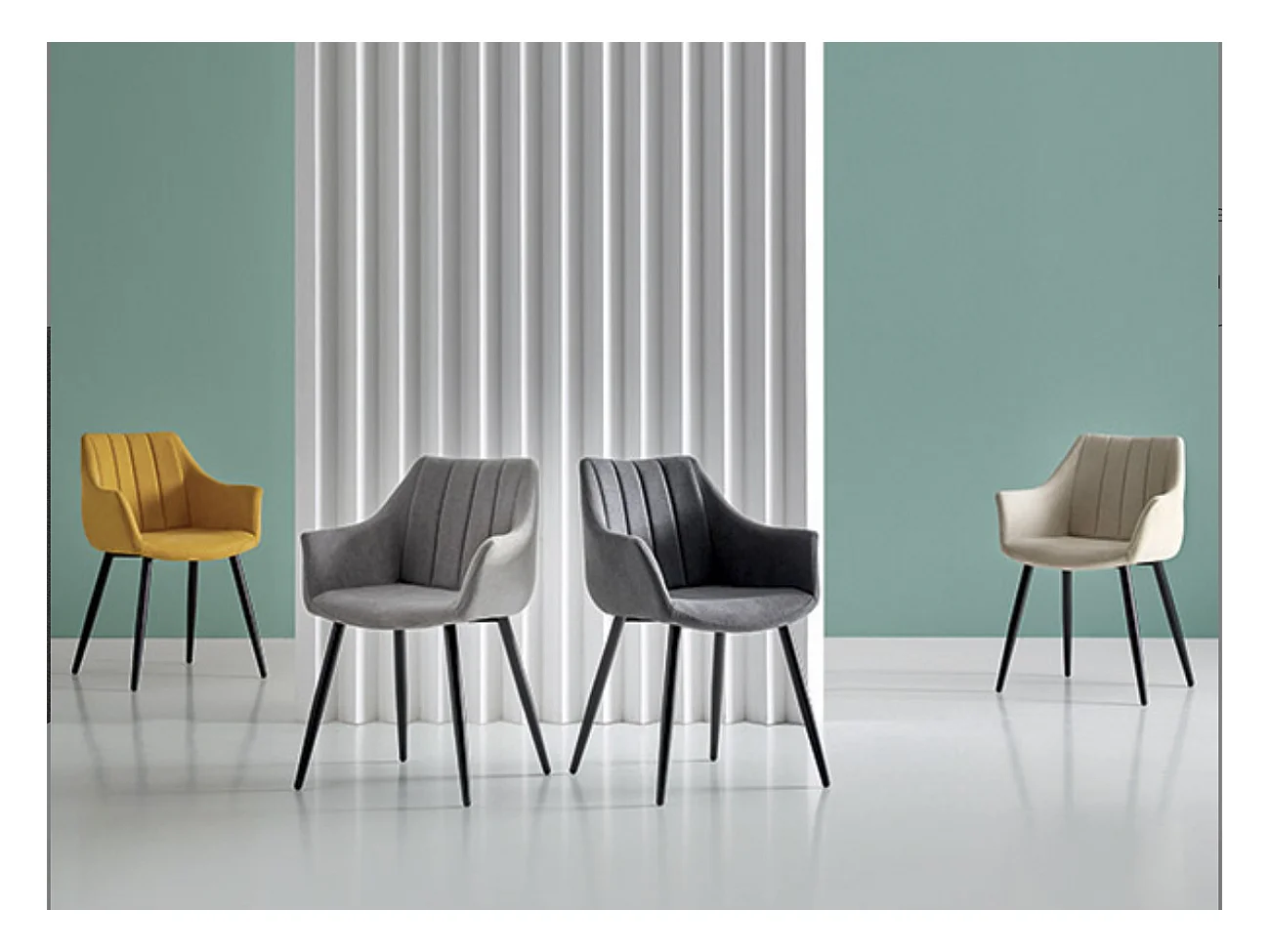 Chaise avec accoudoir tissu matelassé et acier noir Kony-Couleur Gris clair